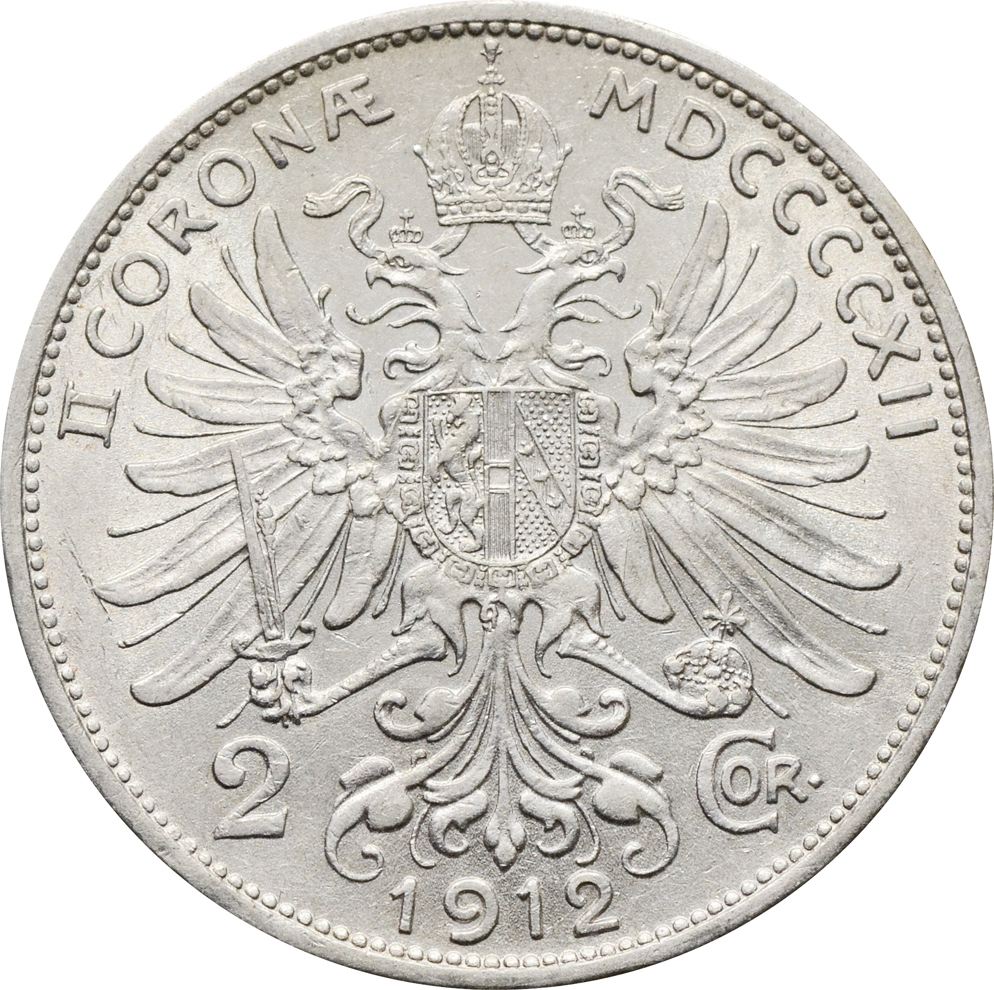 Реверс: в центре монеты изображен герб. Снизу год чеканки: "1912". По обе стороны от герба номинал: "2 COR". Сверху надпись: "II CORONÆ MDCCCCXIII".