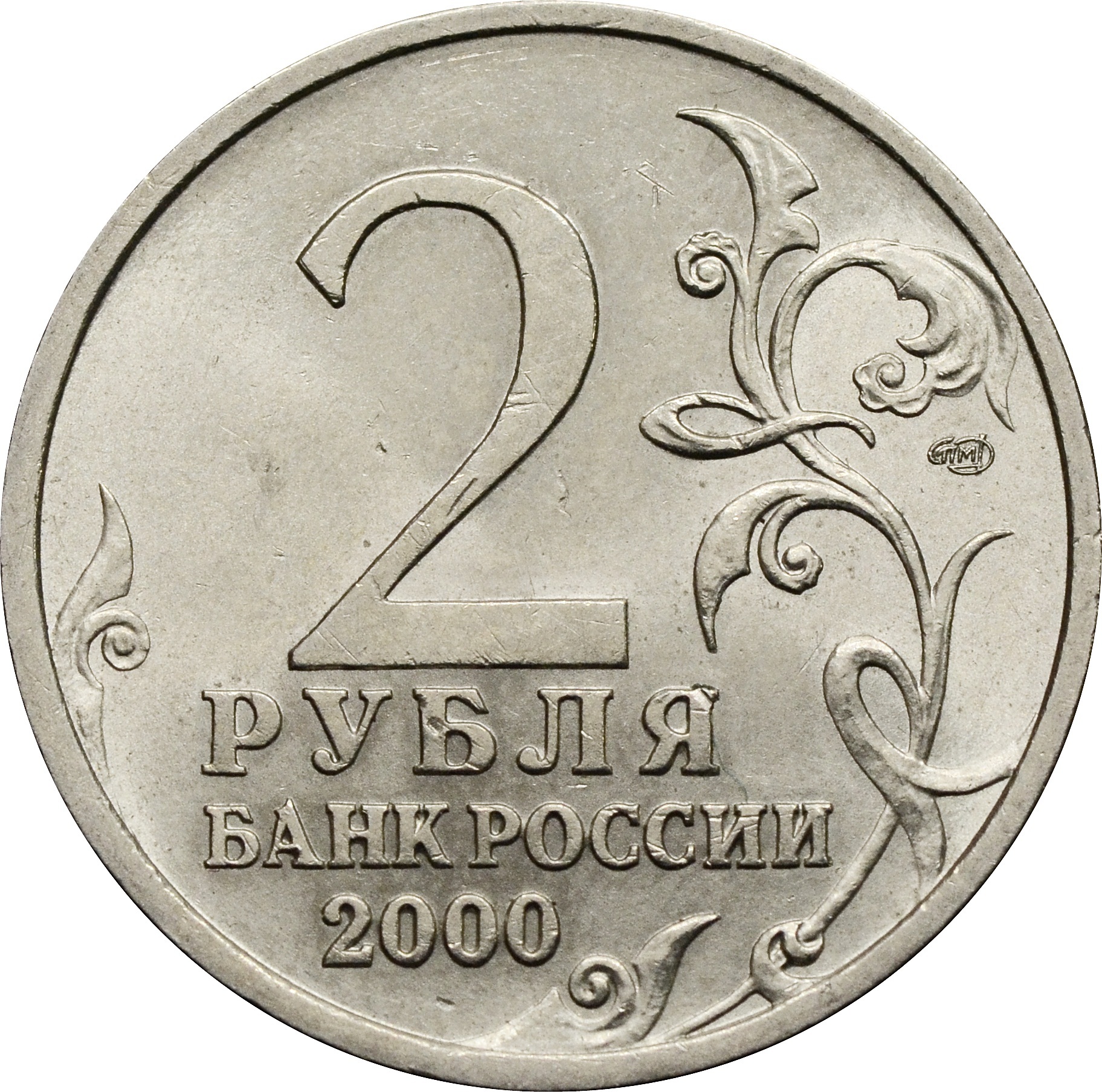 Аверс: в центре монеты указан номинал в две строки: "2 РУБЛЯ", ниже надпись: "БАНК РОССИИ", а под ней год чеканки: "2000". Слева и справа изображена стилизованная ветка растения.