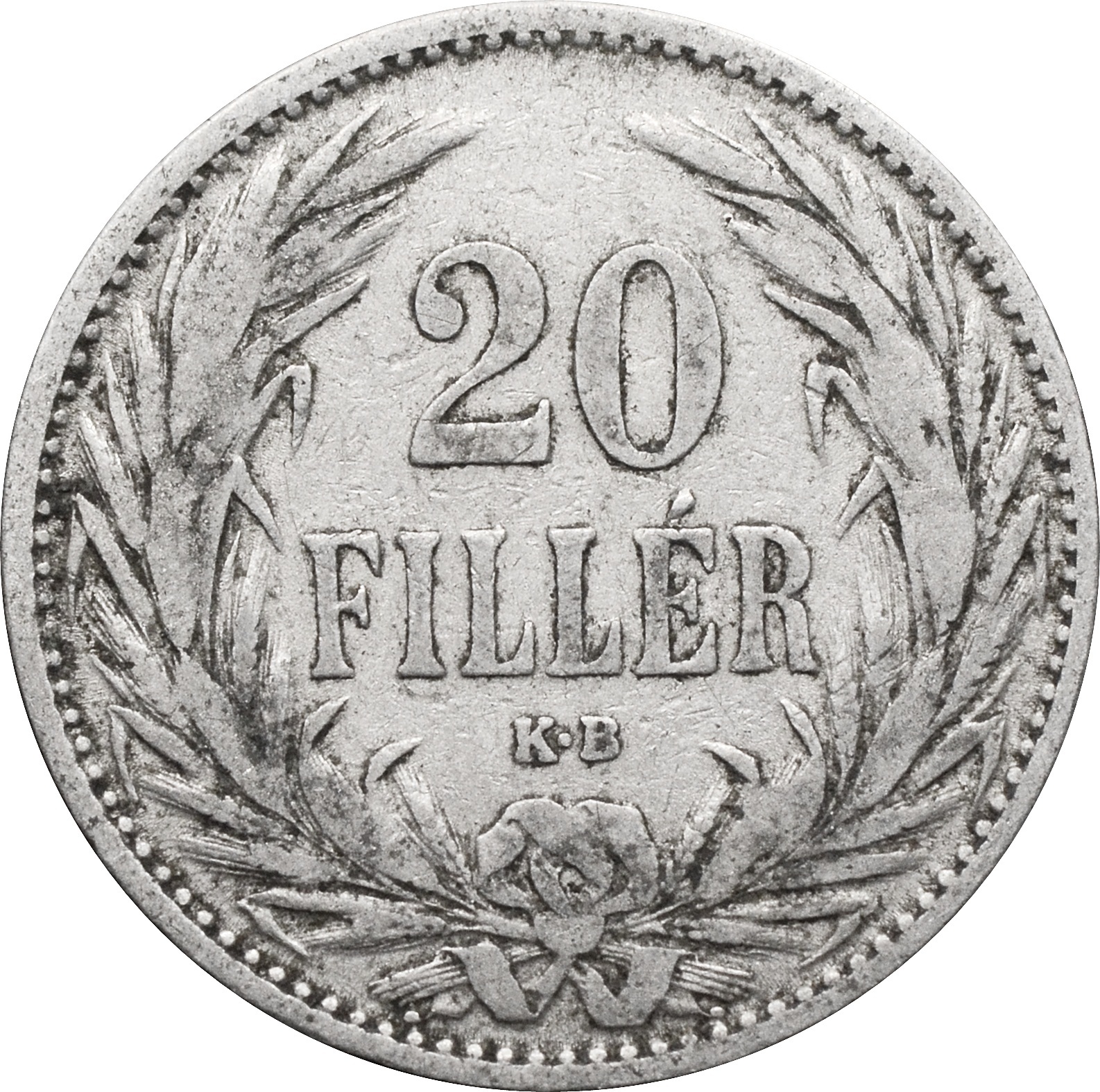 Реверс: по центре монеты указание номинала монеты: "20 FILLÉR".