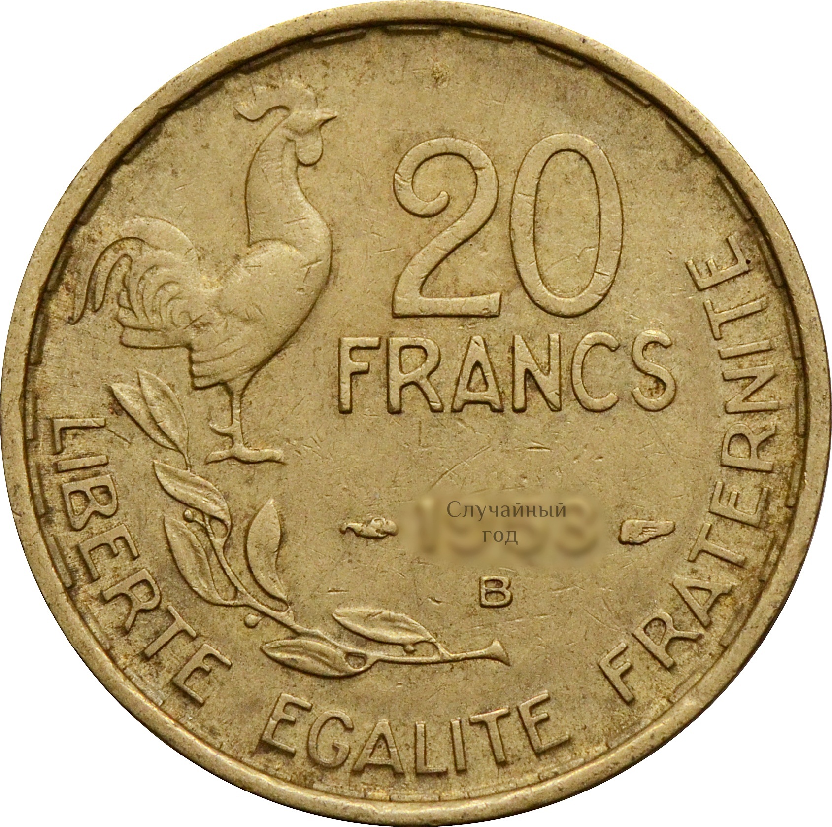 Монета 20 франков 1950-1954 (случайный год) Франция в состоянии XF (отличное).