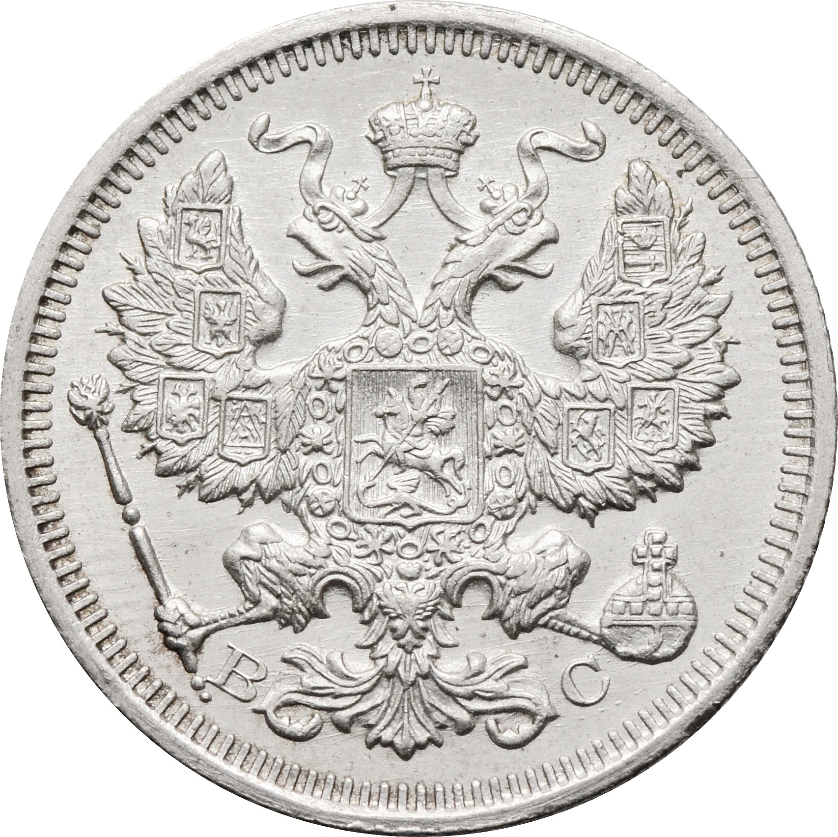 Монета 20 копеек 1915 ВС Николай II в состоянии AU-UNC.