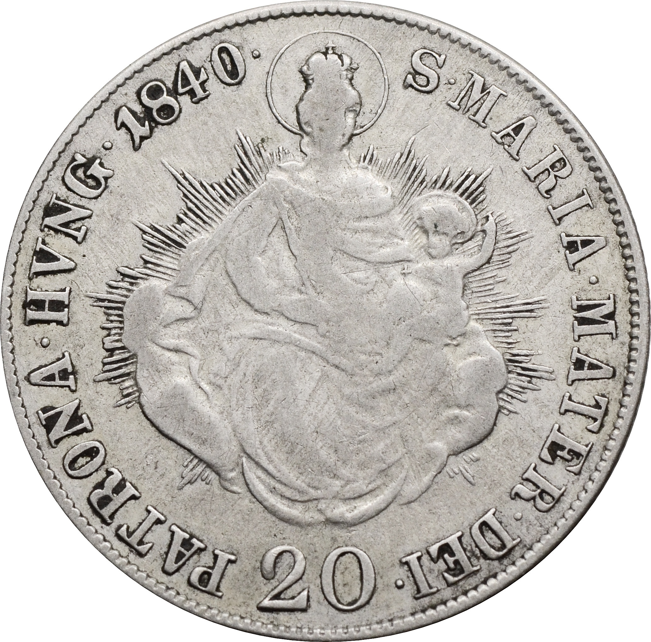 Реверс: в центре изображена Святая Мария, рядом указание года чеканки: "1840". Снизу, полукругом расположена надпись: "PATRONA HVNG S MARIA MATER DEI".