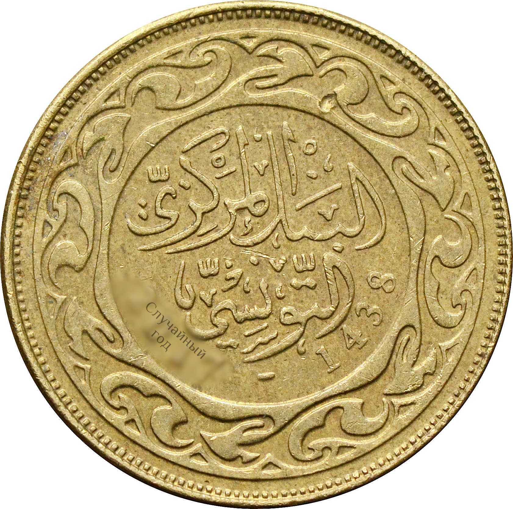 Аверс: по центру монеты, в импровизированном круге, надпись на арабском: "ЦЕНТРАЛЬНЫЙ БАНК ТУНИСА", под ней указан год чеканки по Хиджре и Григорианскому стилю. Вдоль края монеты узорчатый орнамент.