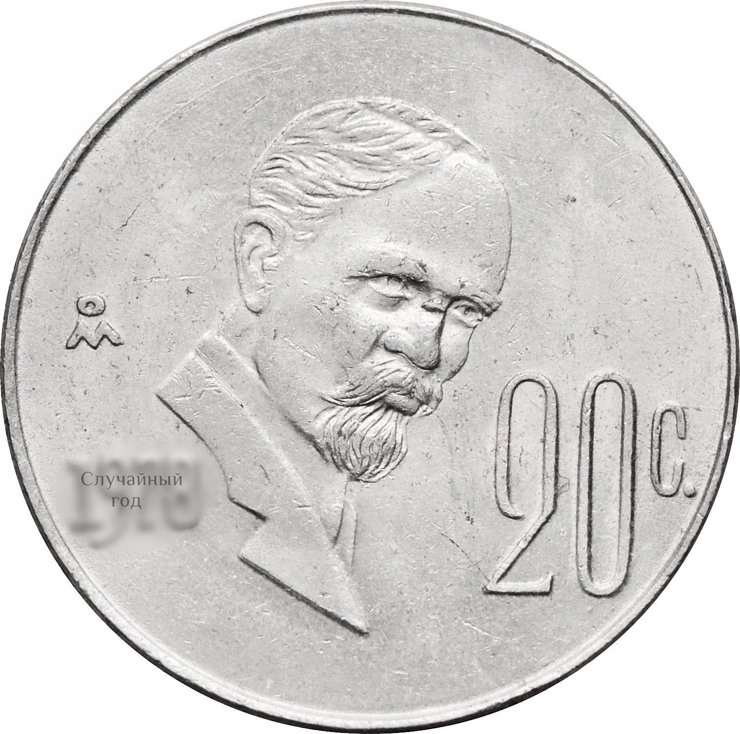 Монета 20 сентаво 1974-1983 (случайный год) Мексика в состоянии VF-XF (очень хорошее).