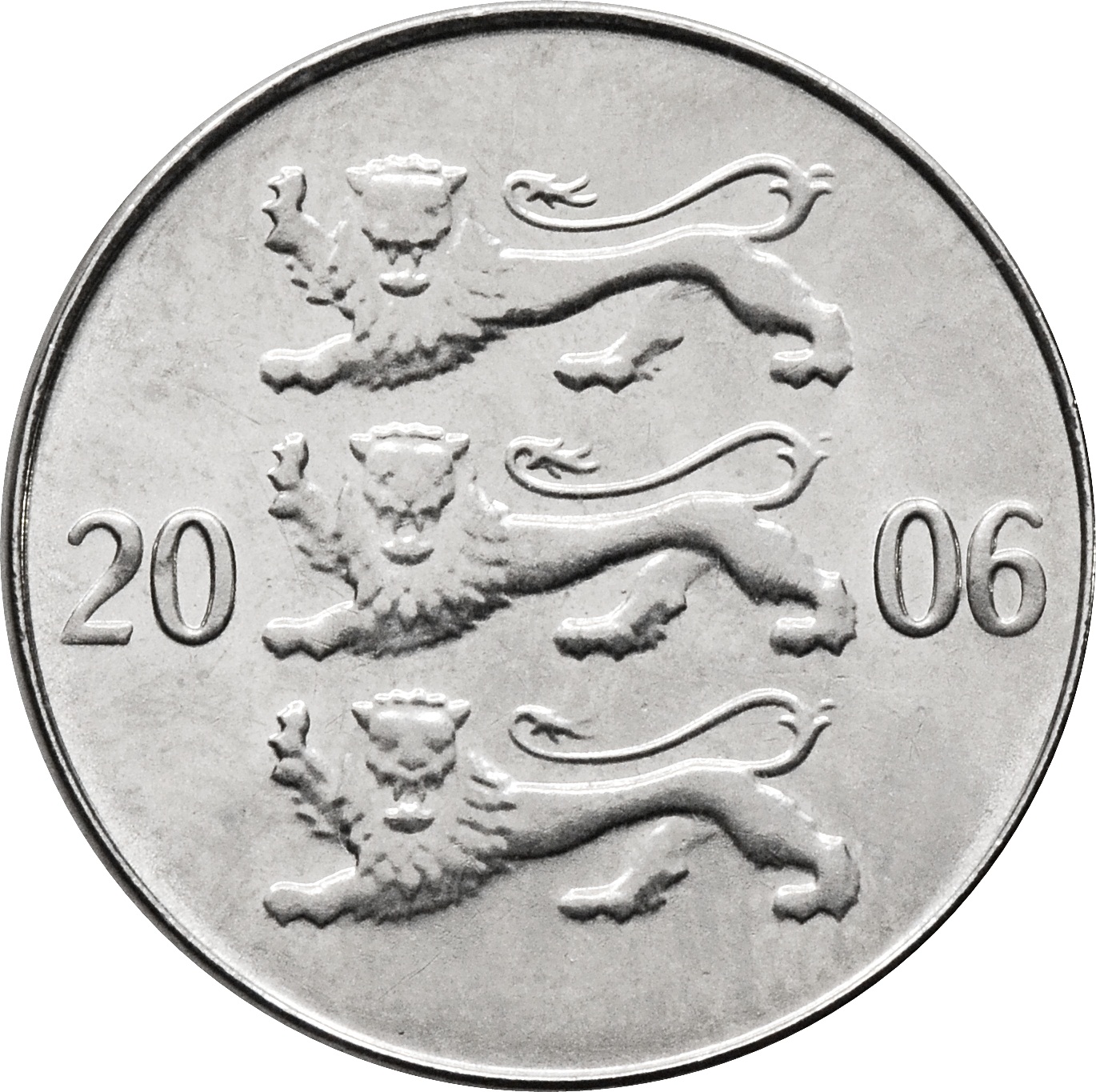 Аверс: по центру расположился герб Эстонии, который разделяет год чеканки монеты на две части: "2006".