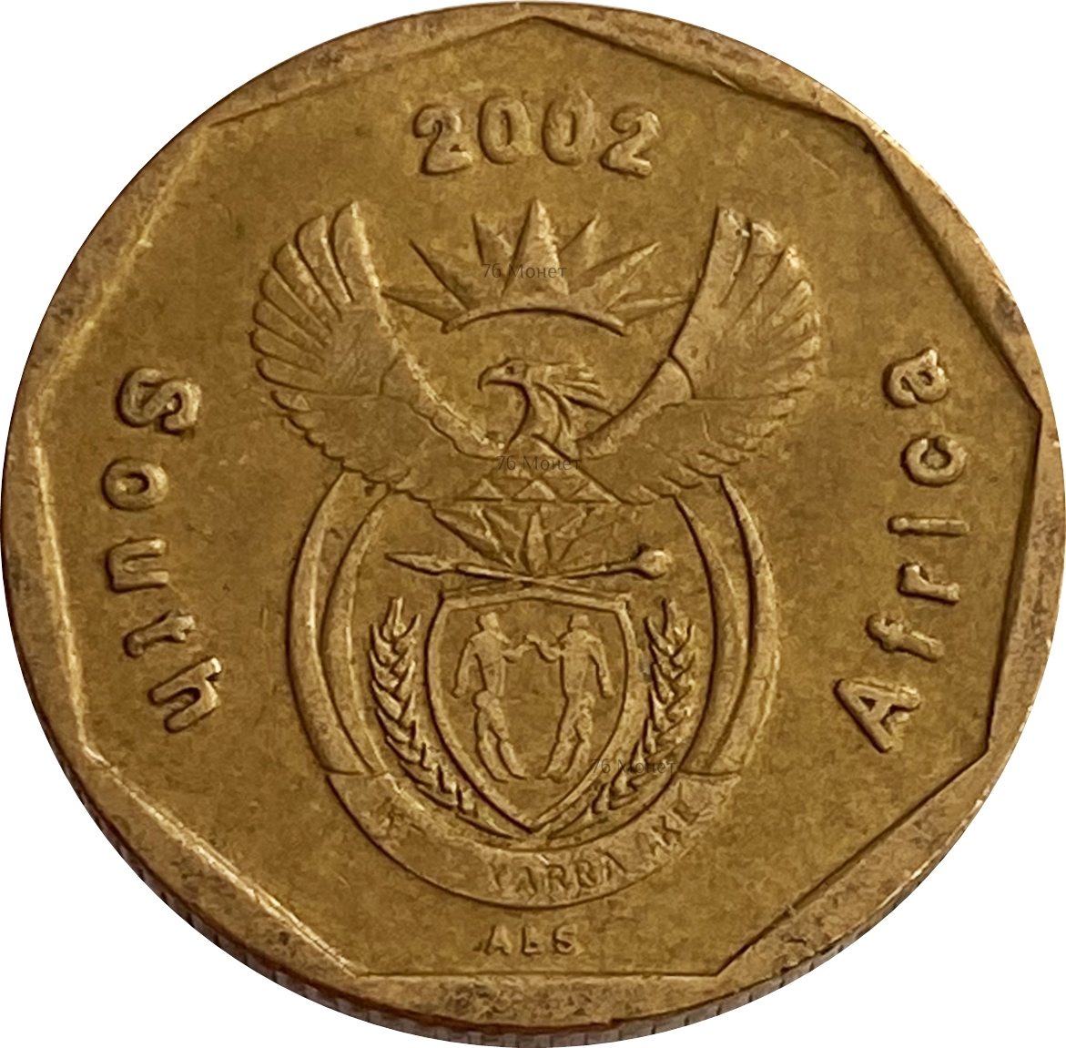 Аверс: в центре монеты размещен государственный герб ЮАР. Сверху указан год чеканки монеты: "2002", а по бокам надписи: слева - "South", а справа - "Africa".