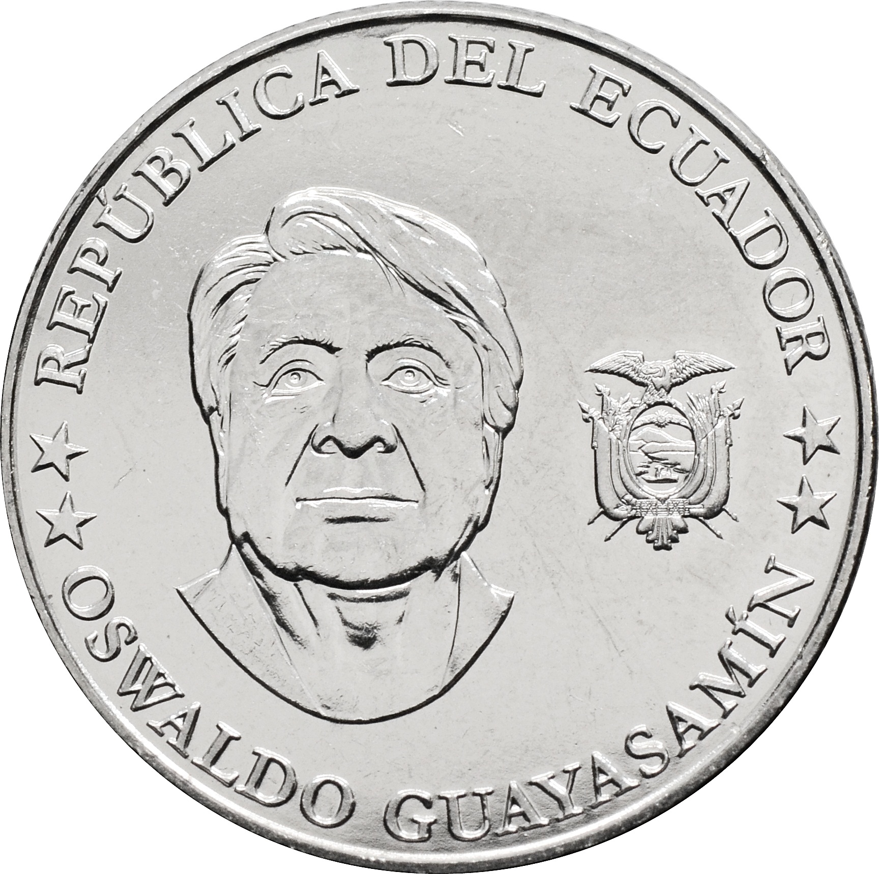 Аверс: в центре монеты портрет Освальдо Гуаясамина. Вдоль края монеты надписи: внизу - "**OSWALDO GUAYASAMIN**", а вверху - "RUPUBLICA DEL ECUADOR".