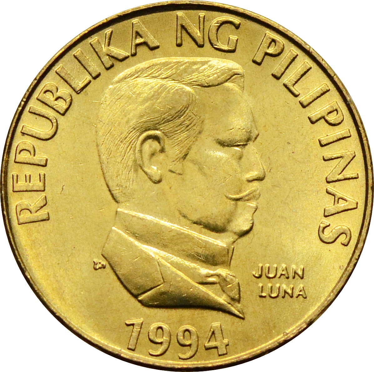 Аверс: в центре монеты размещен портрет Филиппинского художника Хуана Луна. Сверху по краю монеты круговая надпись: "REPUBLIKA NG PILIPINAS", а под ним год чеканки: "1994".