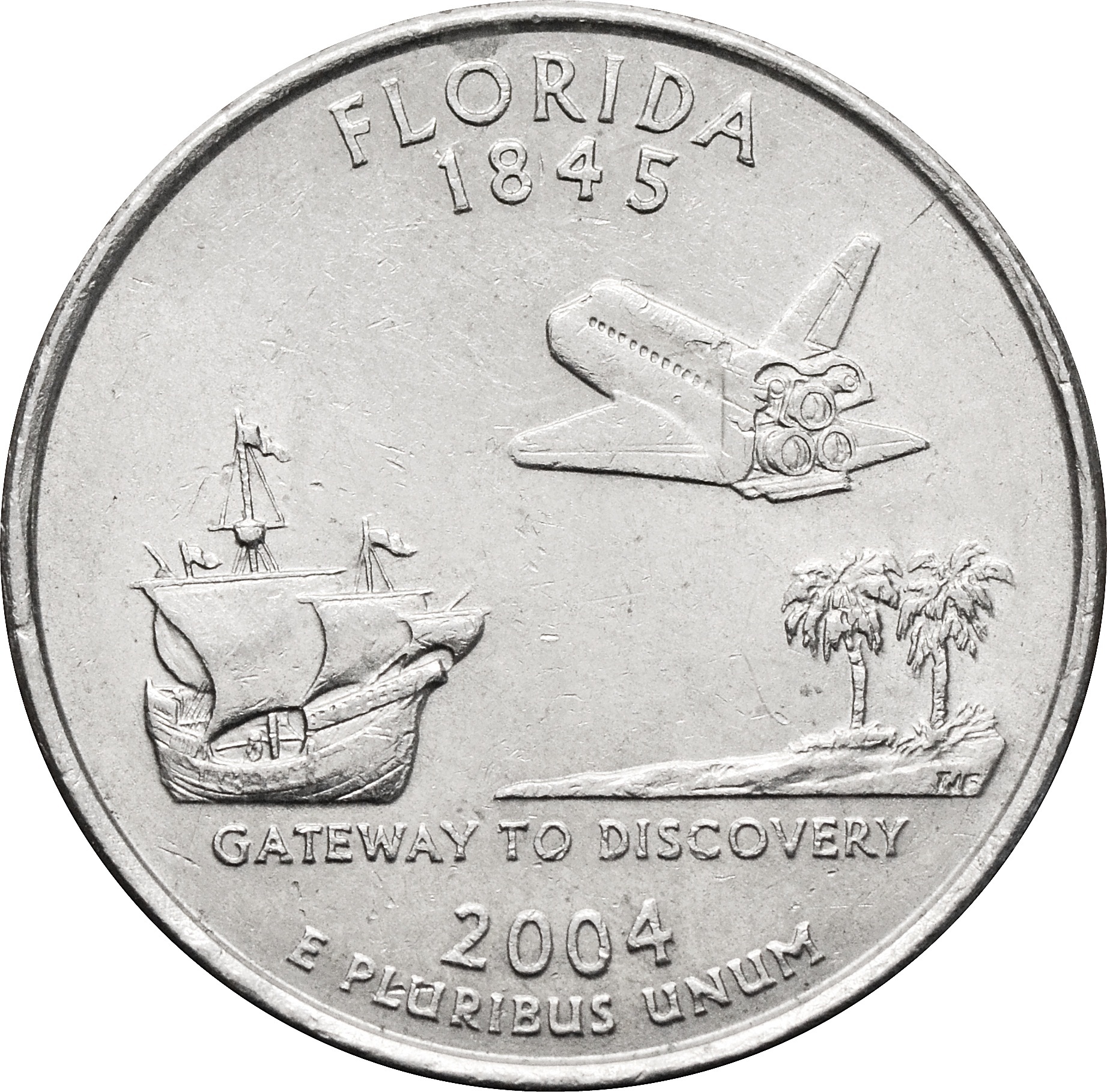 Монета 25 центов (1/4 доллара, квотер) 2004 США «Штат Флорида» (P) XF