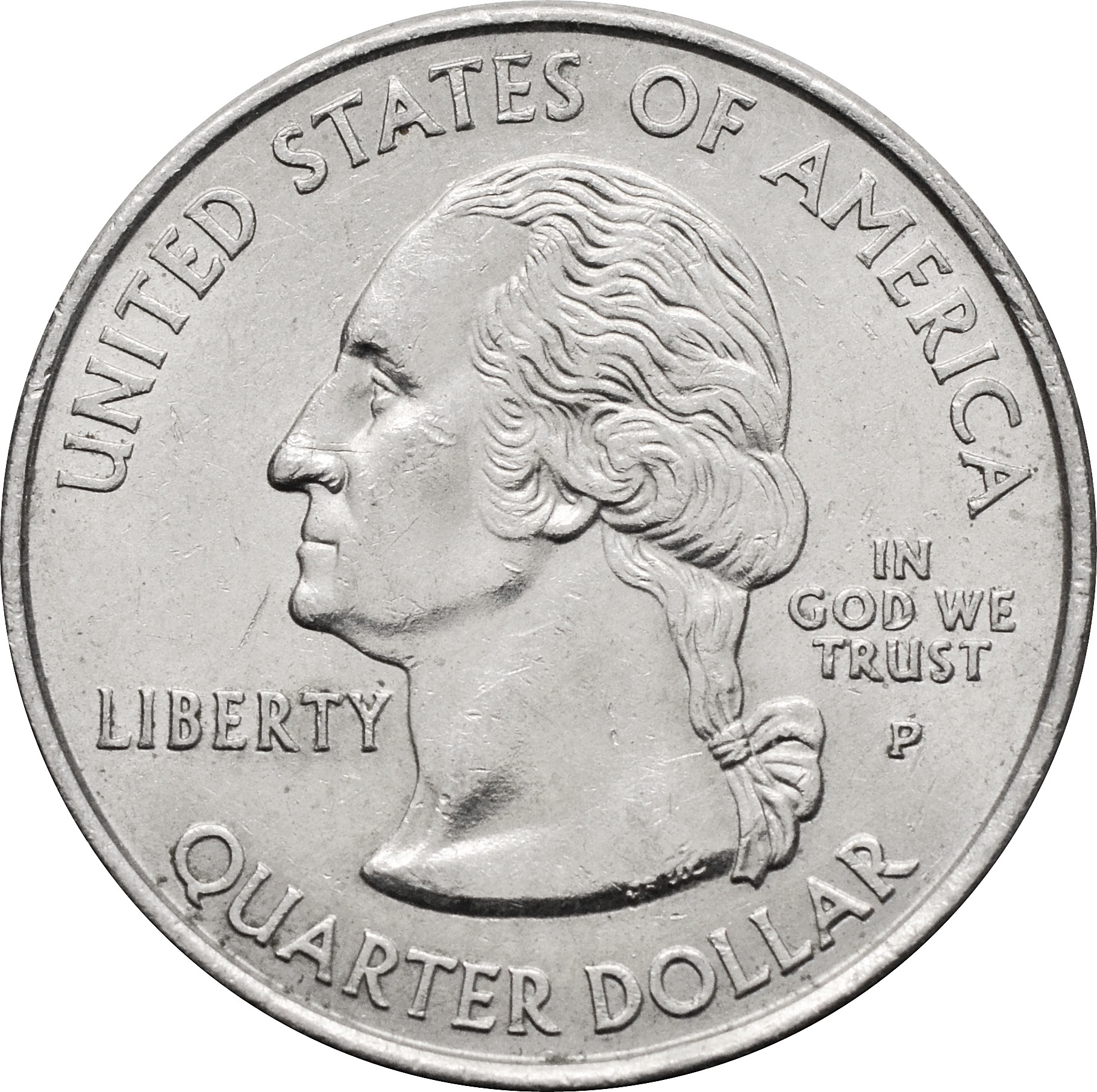 Аверс: в центре изображение портрета Джорджа Вашингтона - 1-ого президента США. Вдоль канта монеты надписи: сверху - "UNITED STATES OF AMERICA", снизу – "QUARTER DOLLAR", слева – "LIBERTY", справа – "IN GOD WE TRUST", а так же знак монетного двора - "P".