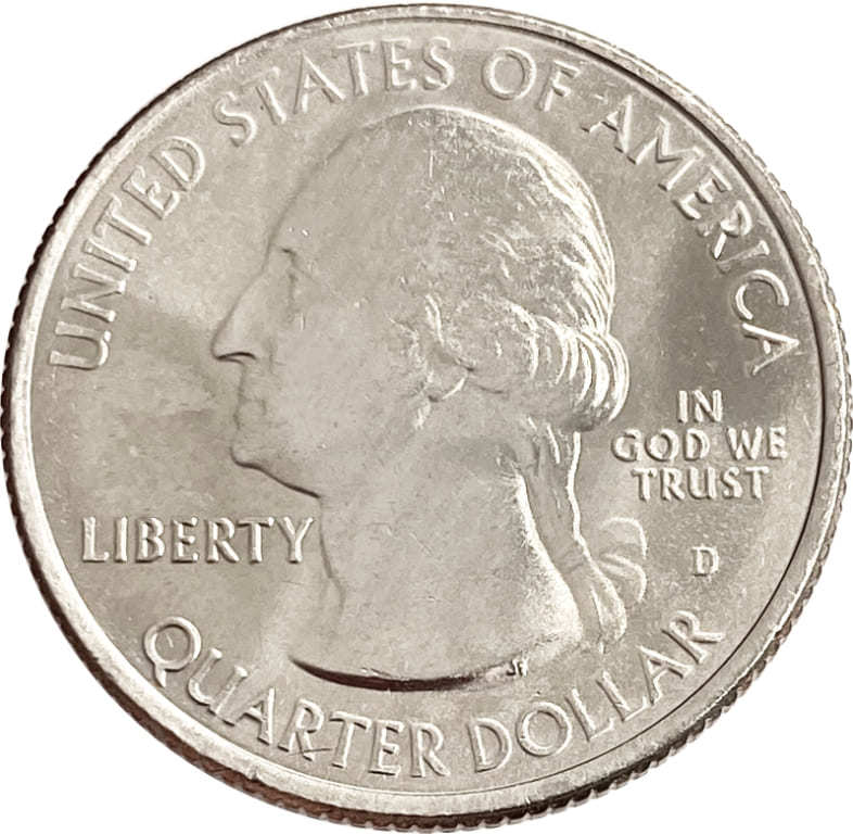 Аверс: в центре изображение портрета Джорджа Вашингтона - 1-ого президента США. Вдоль канта монеты надписи: сверху - "UNITED STATES OF AMERICA", снизу – "QUARTER DOLLAR", слева – "LIBERTY", справа – "IN GOD WE TRUST", а так же знак монетного двора - "D".
