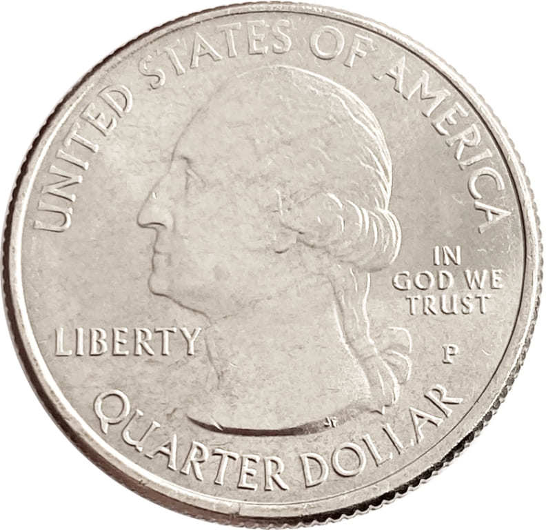 Аверс: в центре изображение портрета Джорджа Вашингтона - 1-ого президента США. Вдоль канта монеты надписи: сверху - "UNITED STATES OF AMERICA", снизу – "QUARTER DOLLAR", слева – "LIBERTY", справа – "IN GOD WE TRUST", а так же знак монетного двора - "P".