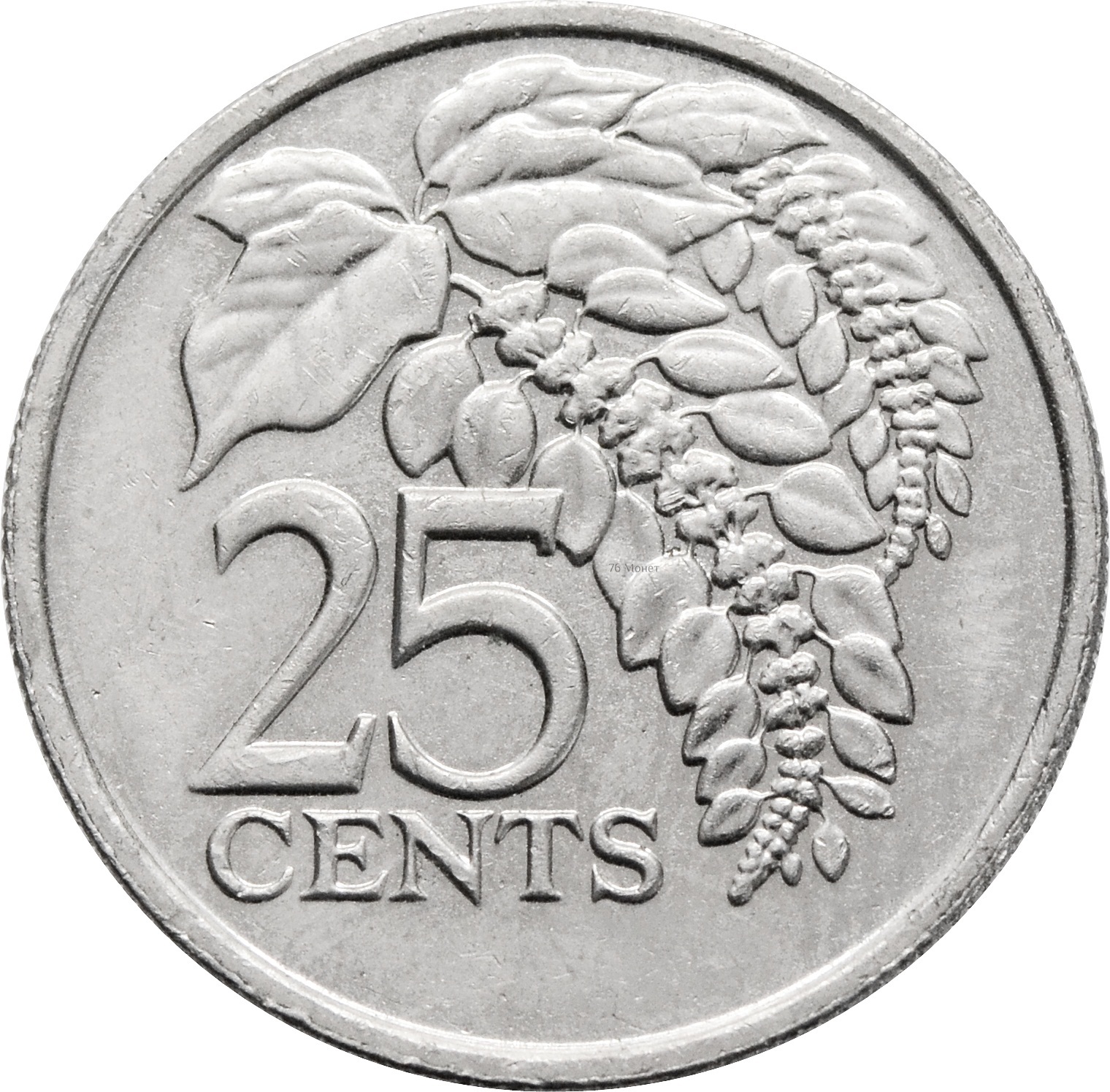 Монета 25 центов 1976-2016 (случайный год) Тринидад и Тобаго в состоянии XF (очень хорошее).