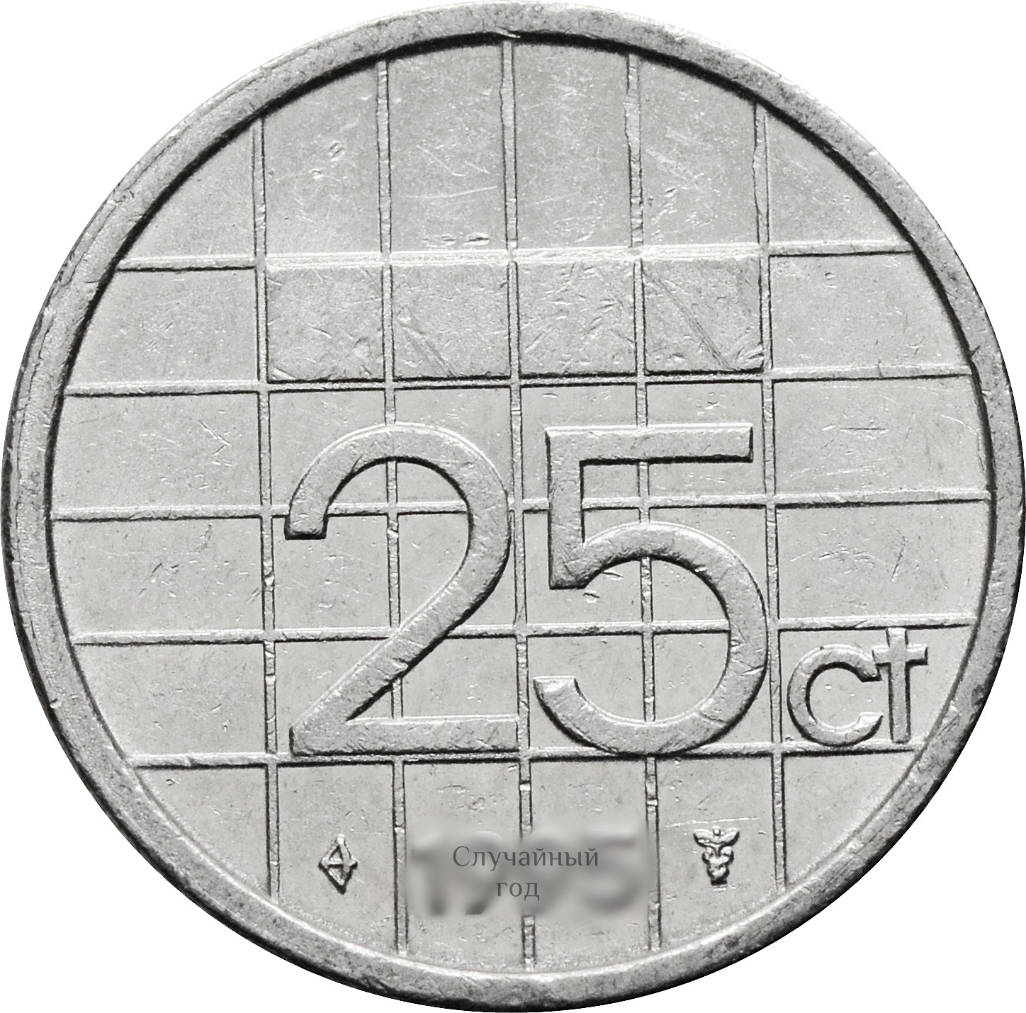 Монета 25 центов 1982-2001 (случайный год) Нидерланды в состоянии XF (отличное).