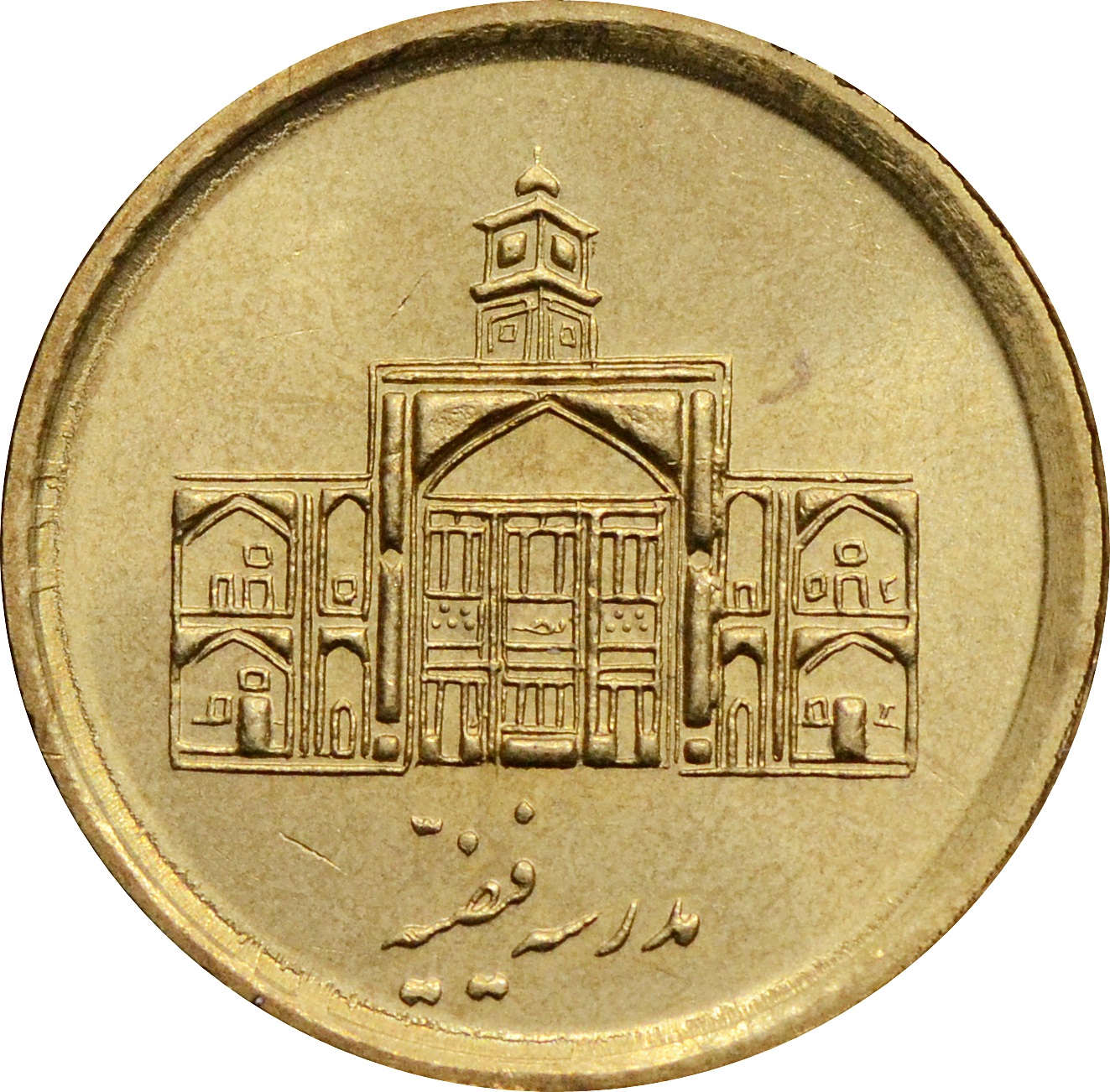 Аверс: по центру монеты изображение теологической школы: "Feyziyeh School".