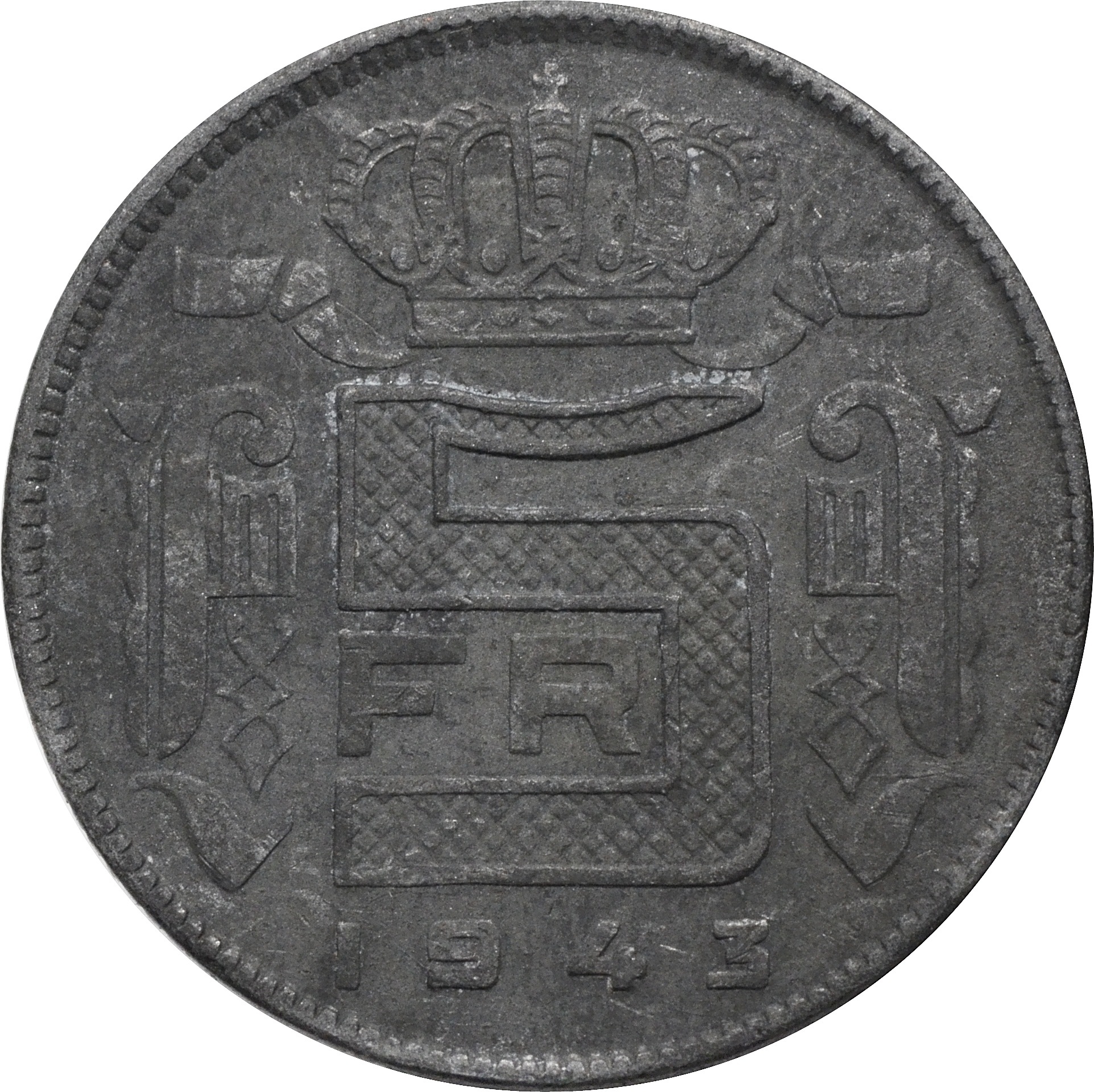 Реверс: по центру указан номинал: "5FR". Снизу размещен год чеканки: "1943".