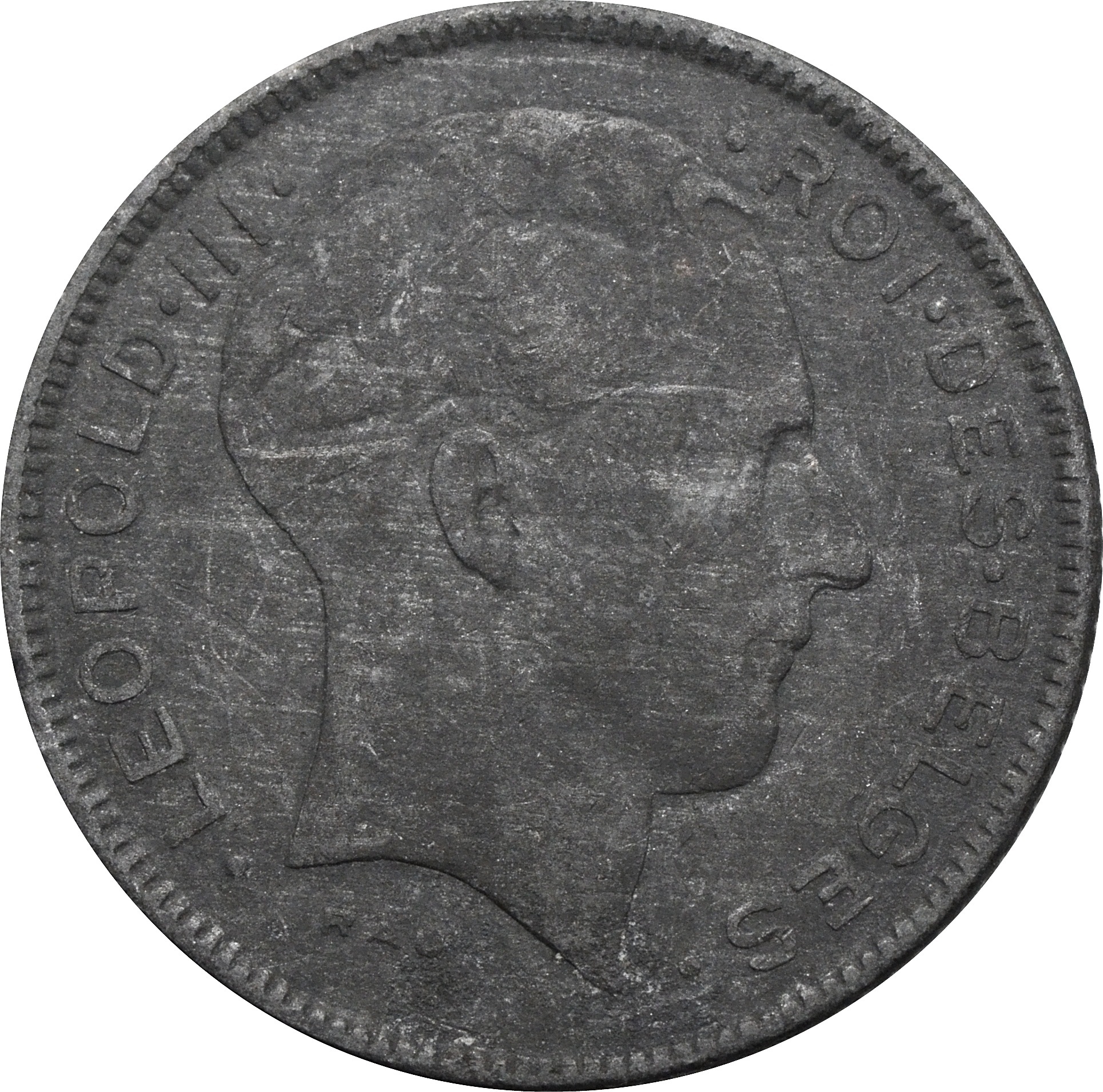 Аверс: в центре изображен портрет короля Леопольда III. Вдоль канта надпись: "LEOPOLD III KONING DES BELGES".