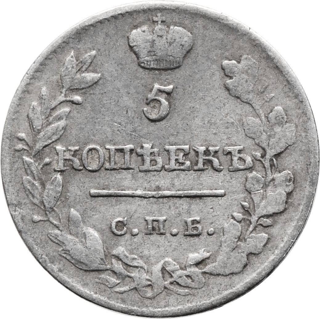 Монета 5 копеек 1819 СПБ-ПС Александр I в состоянии VF.