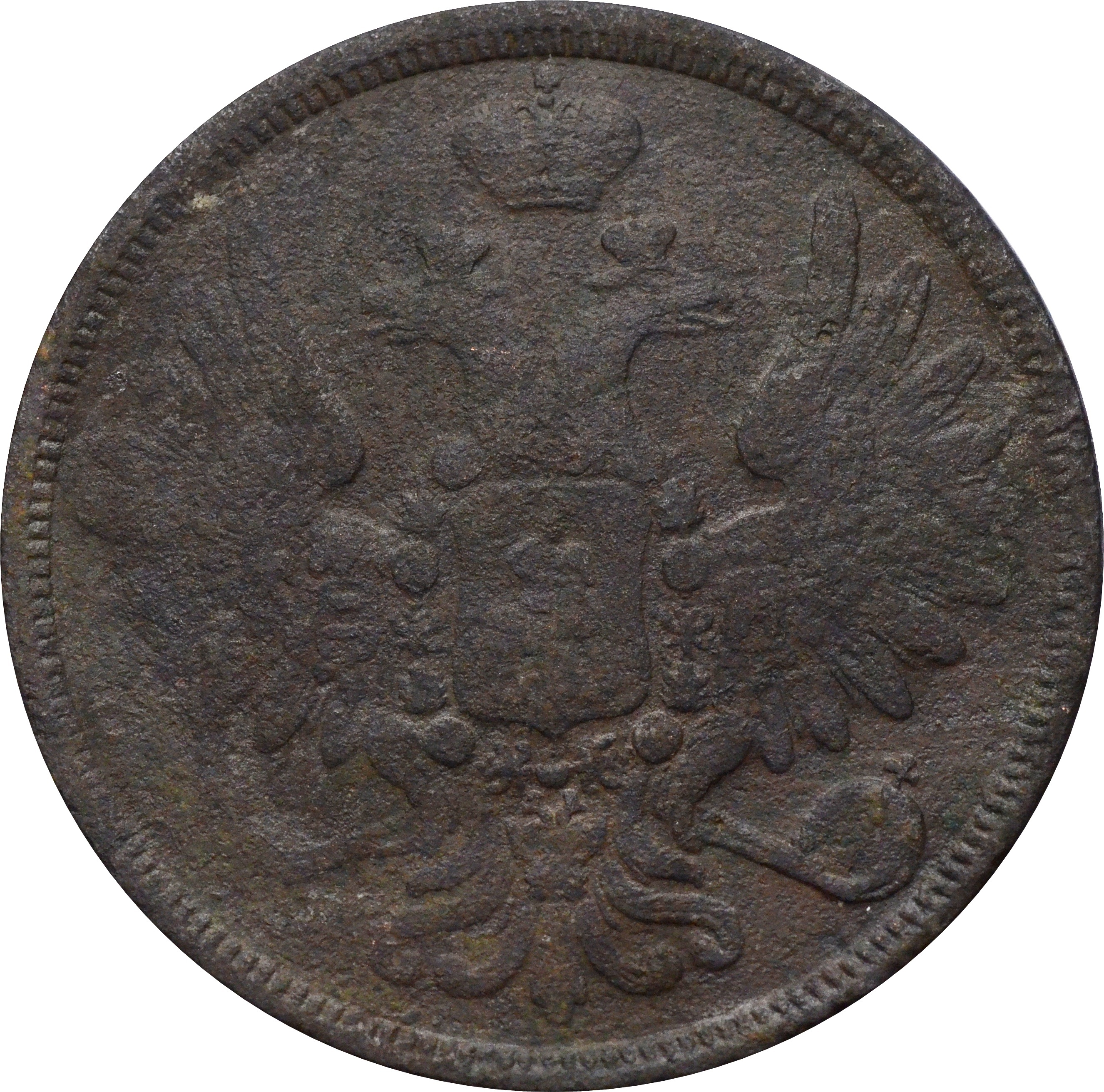 Аверс: в центре аверса изображен малый герб Российской Империи - двуглавый орел, с коронами на головах, держащий скипетр в правой лапе и державу в левой. На его груди щит с изображением Георгия Победоносца с копьем поражающего змея, а на крыльях маленькие щиты с гербами царств: Казанского, Польского, Херсонеса Таврического, Астраханского, Сибирского, Грузинского и герб соединенных княжеств Киевского, Новгородского и Владимирского.