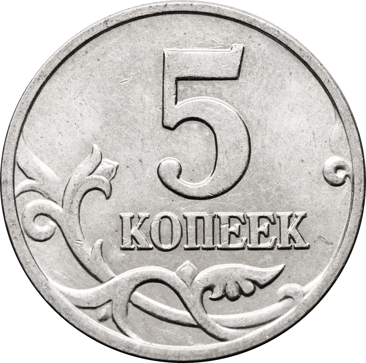 Реверс: по центру обозначение номинала монеты: "5 КОПЕЕК". В нижней части диска стилизованный растительный орнамент в виде двух ветвей