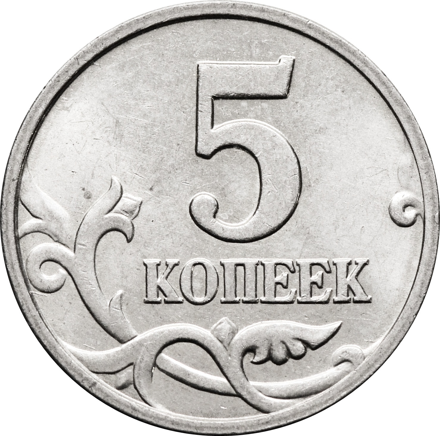 Реверс: по центру обозначение номинала монеты: "5 КОПЕЕК". В нижней части диска стилизованный растительный орнамент в виде двух ветвей