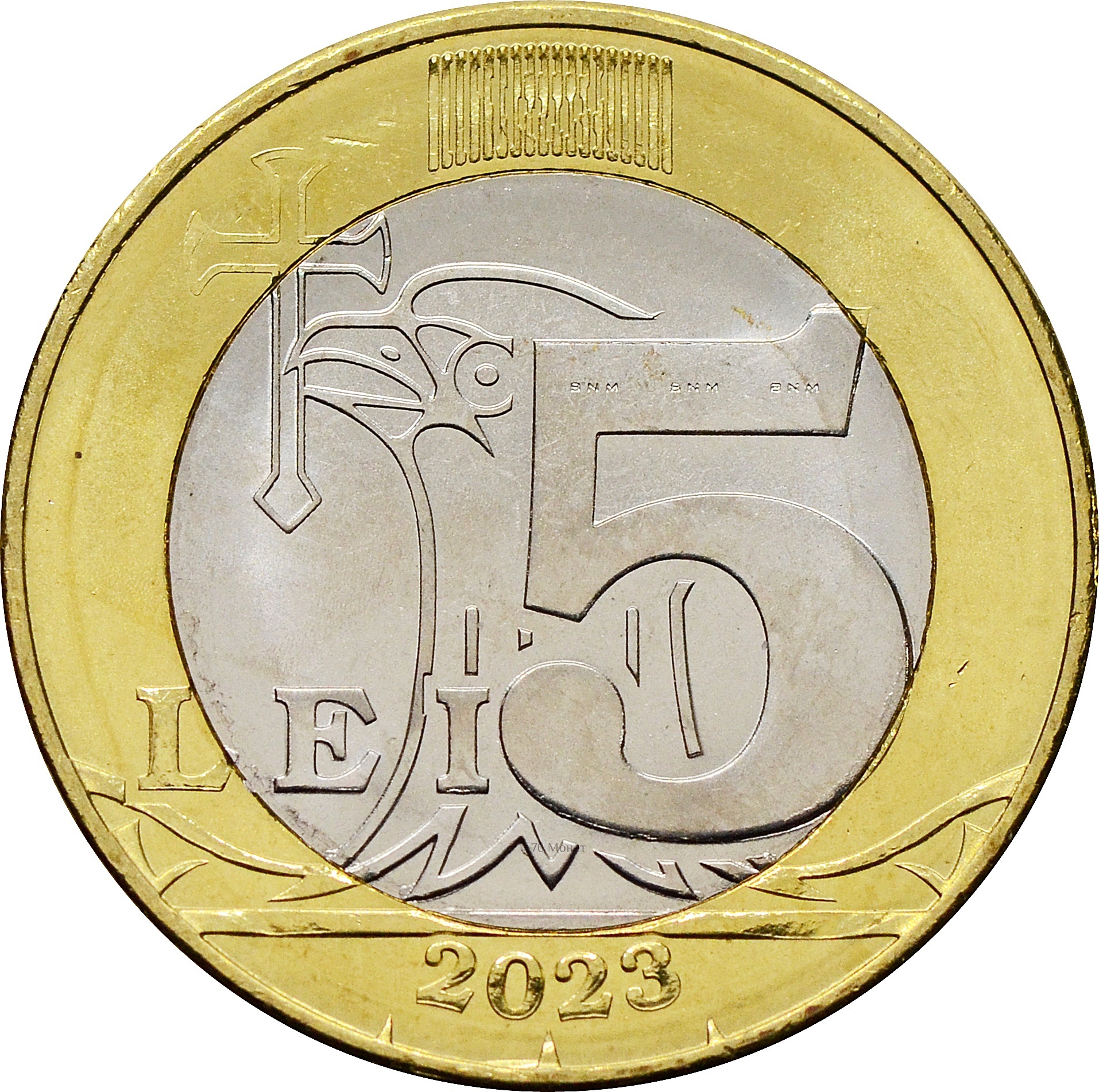 Реверс: в центре указан номинал: "5 LEI". Снизу год чеканки: "2023".
