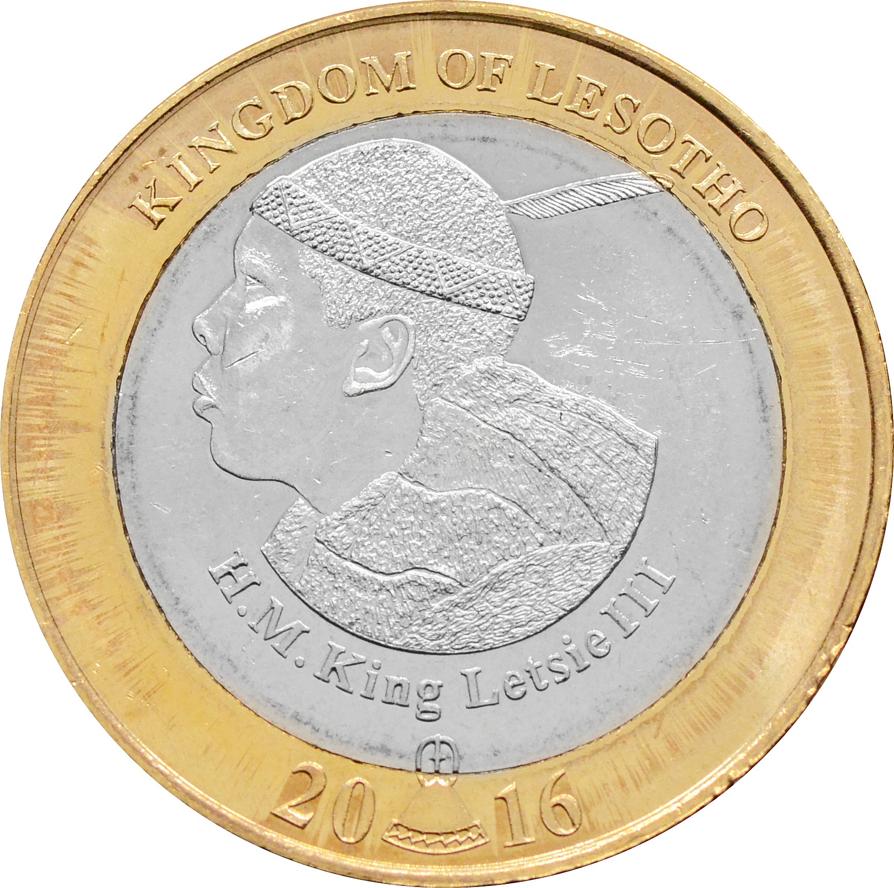 Реверс: по центру изображён король Лесото в 1990–1995 годах и с 7 февраля 1996 года по настоящее время (2016 год) — Летсие III. Под портретом короля отчеканено его имя: "H.M. KING LETSIE III". Над ним находится надпись: "KINGDOM OF LESOTHO". Снизу указан год чеканки монеты: "2016".