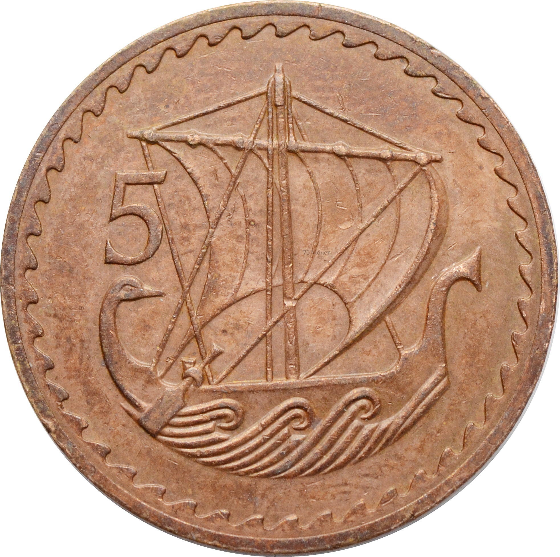 Монета 5 милей 1963-1980 (случайный год) Кипр в состоянии XF (отличное).
