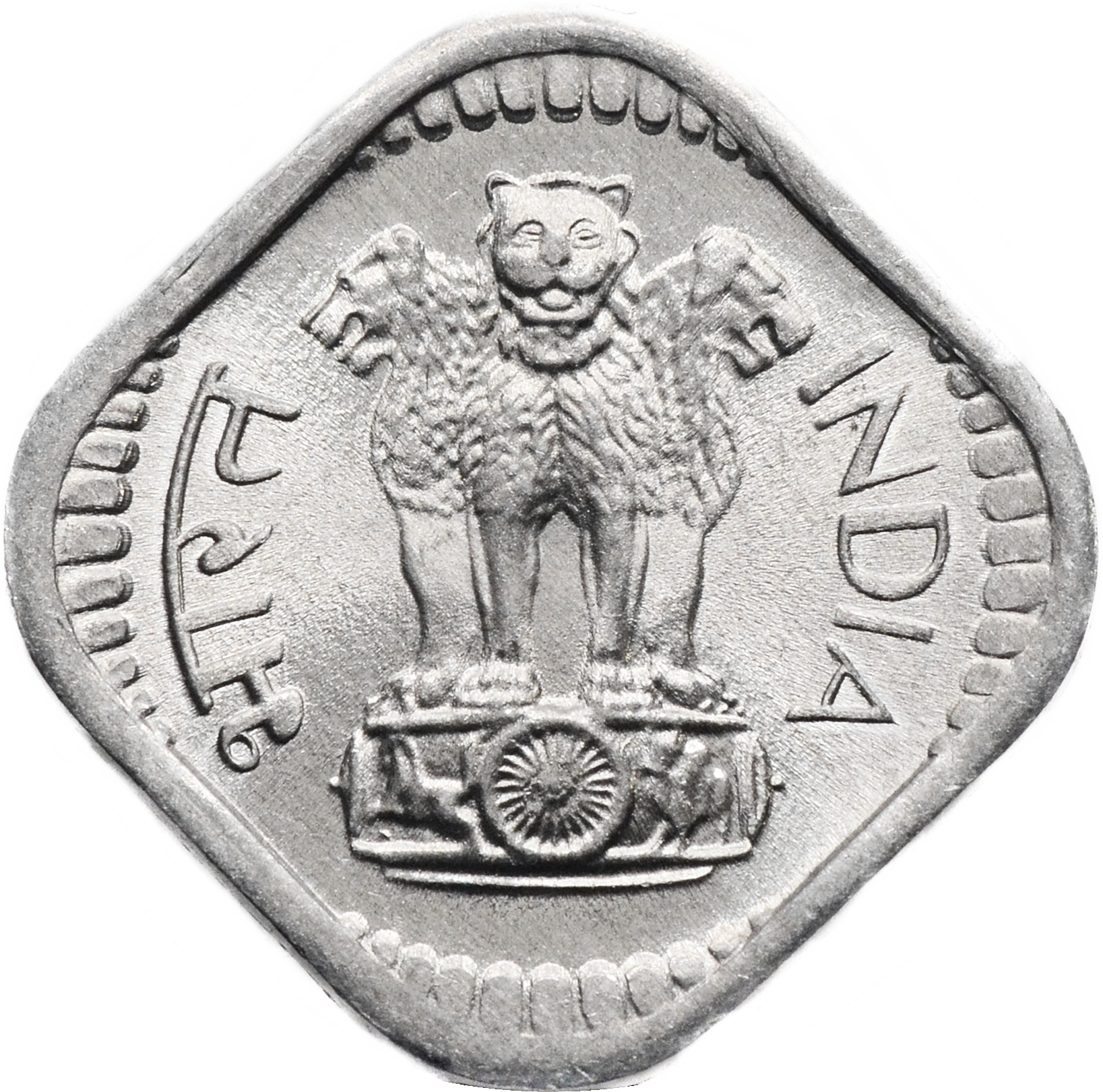 Аверс: по центру государственный герб Индии – адаптированное изображение сарнатхской Львиной капители Ашоки. Справа и слева надписи по канту: "INDIA" и "भारत". Ниже подпись: "सत्यमेव जयते".