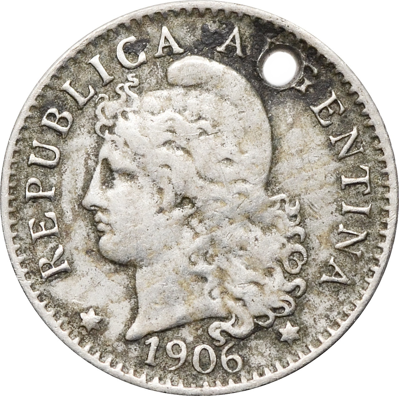 Аверс: в центре монеты изображен портрет. Правее подпись: "REPUBLICA ARGENTINA". Снизу год чеканки монеты: "1906".