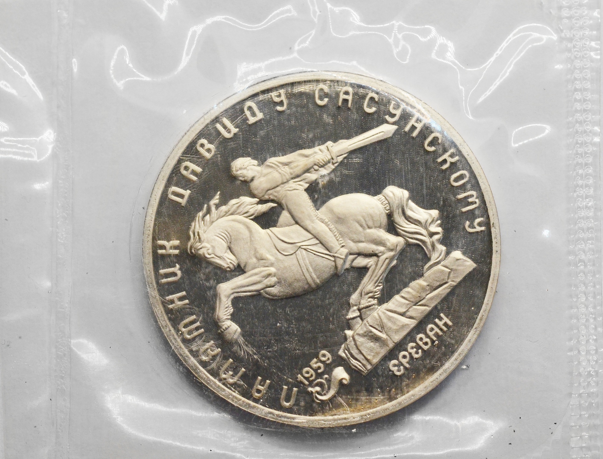 Монета 5 рублей 1991 «Памятник Давиду Сасунскому в Ереване» в исполнении PROOF.