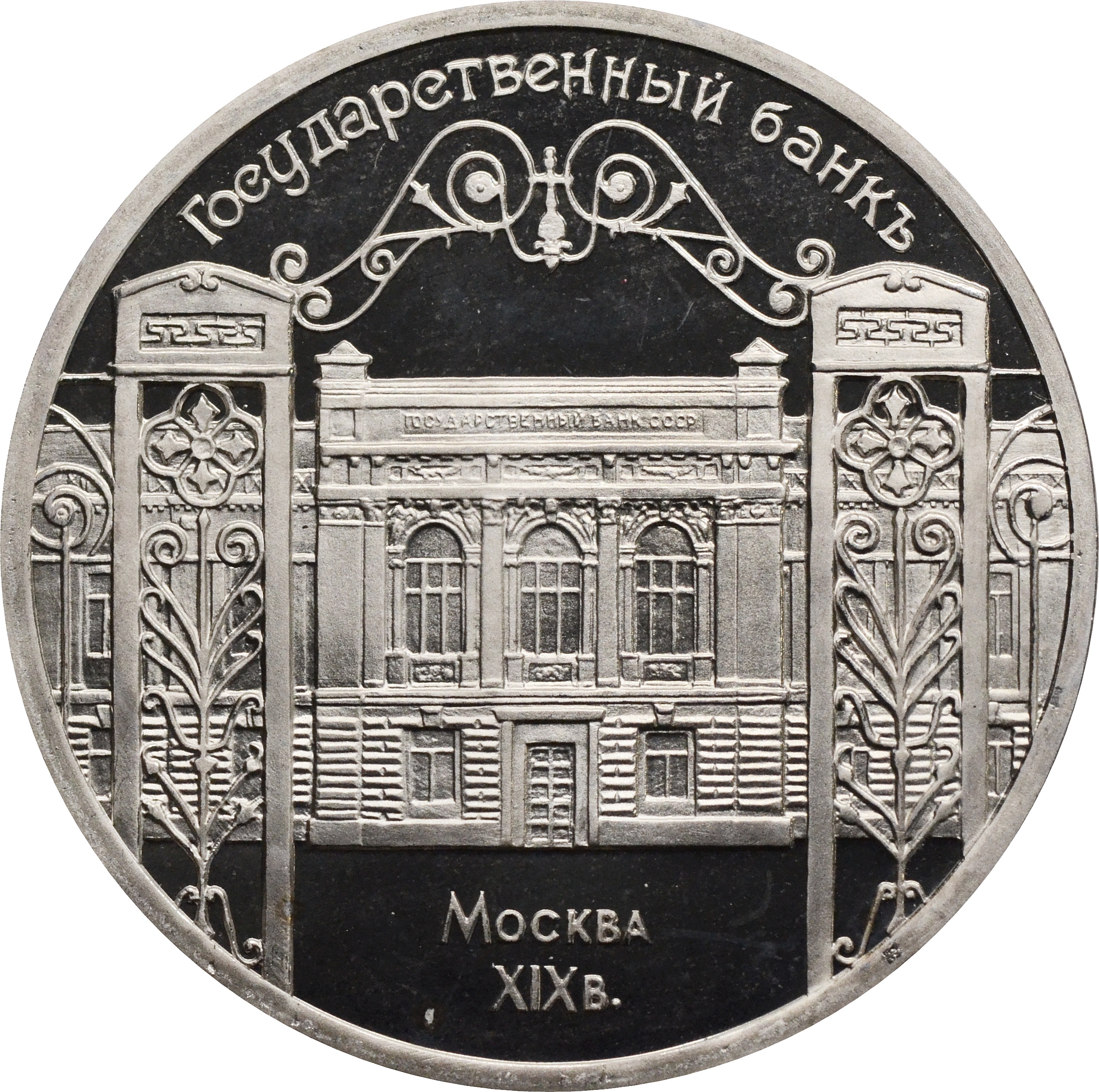 Монета 5 рублей 1991 «Здание Государственного банка в Москве» (ГосБанк) капсула