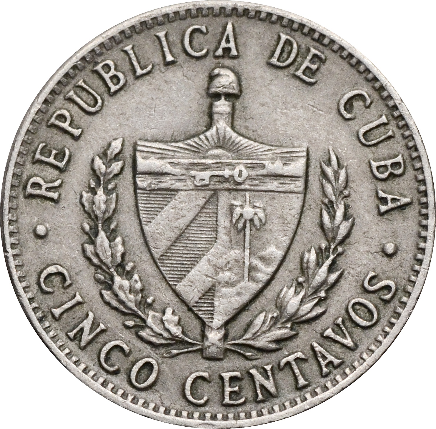 Реверс: в верхней части монеты надпись: "REPUBLICA DE CUBA". По центру изображен герб Кубы. В нижней части надпись: "CINCO CENTAVOS".