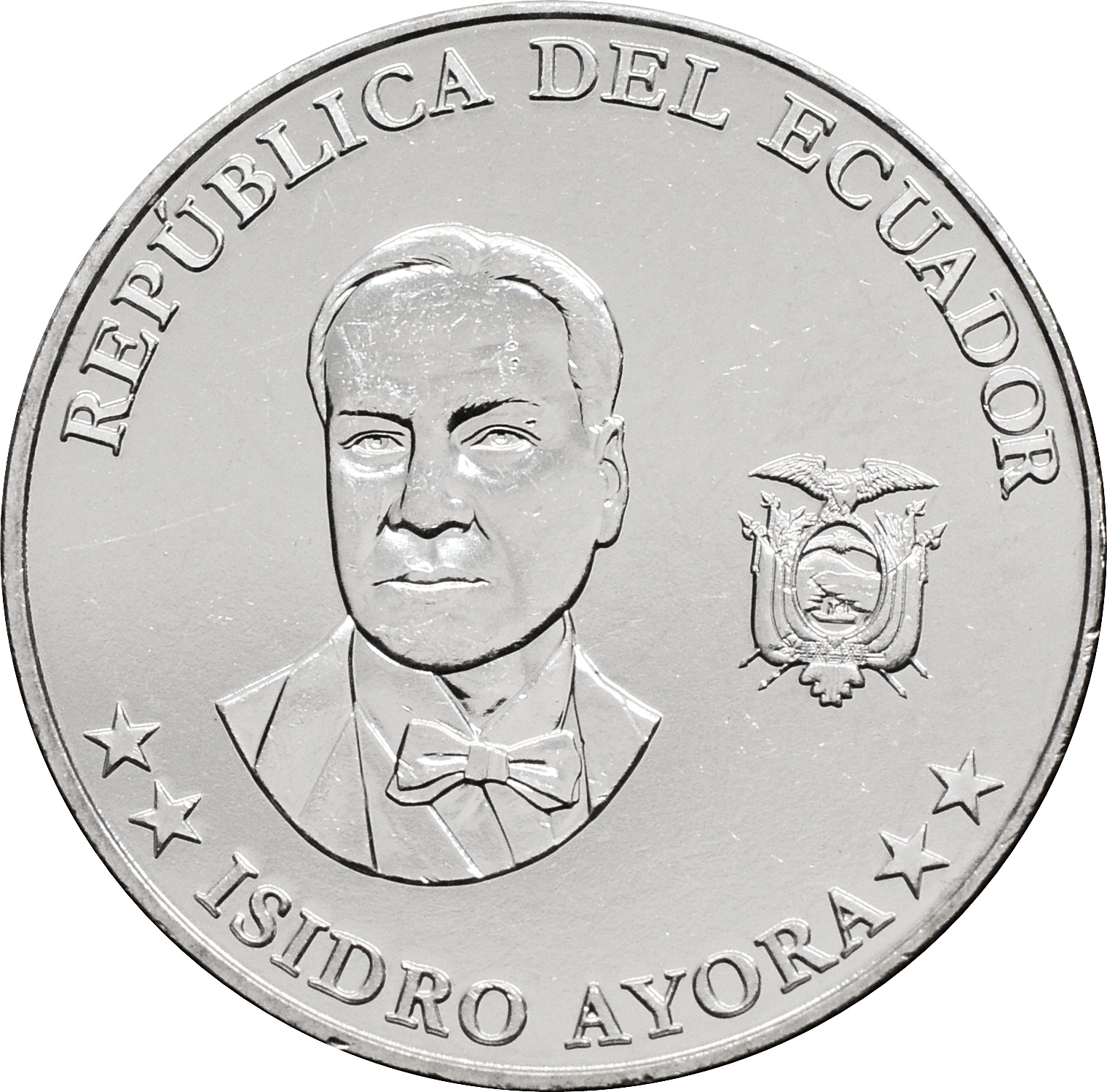 Аверс: в центре монеты портрет Исидро Айора. Вдоль края монеты надписи: внизу - "**ISIDRO AYORA**", а вверху - "RUPUBLICA DEL ECUADOR".