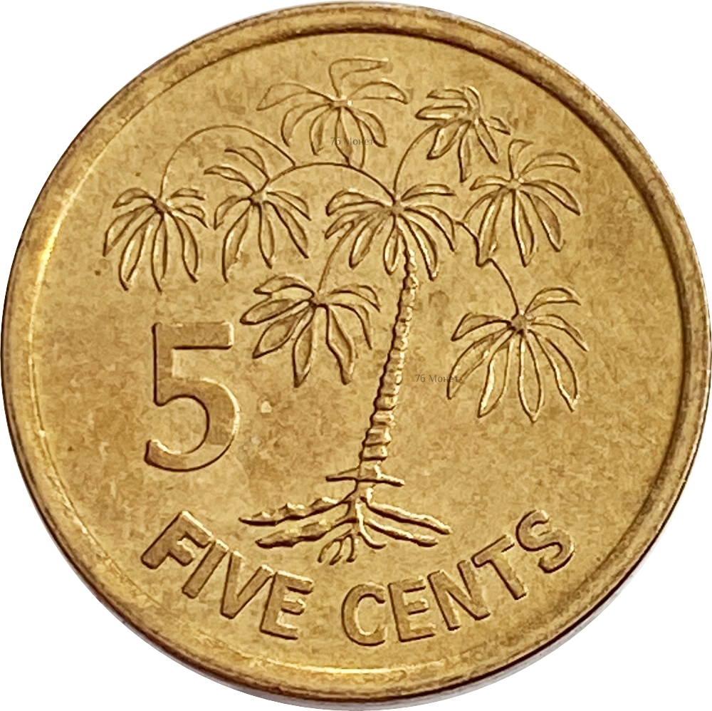 Реверс: в центре монеты изображена пальма. Левее указан номинал цифрой - "5", ниже прописью - "FIVE CENTS".