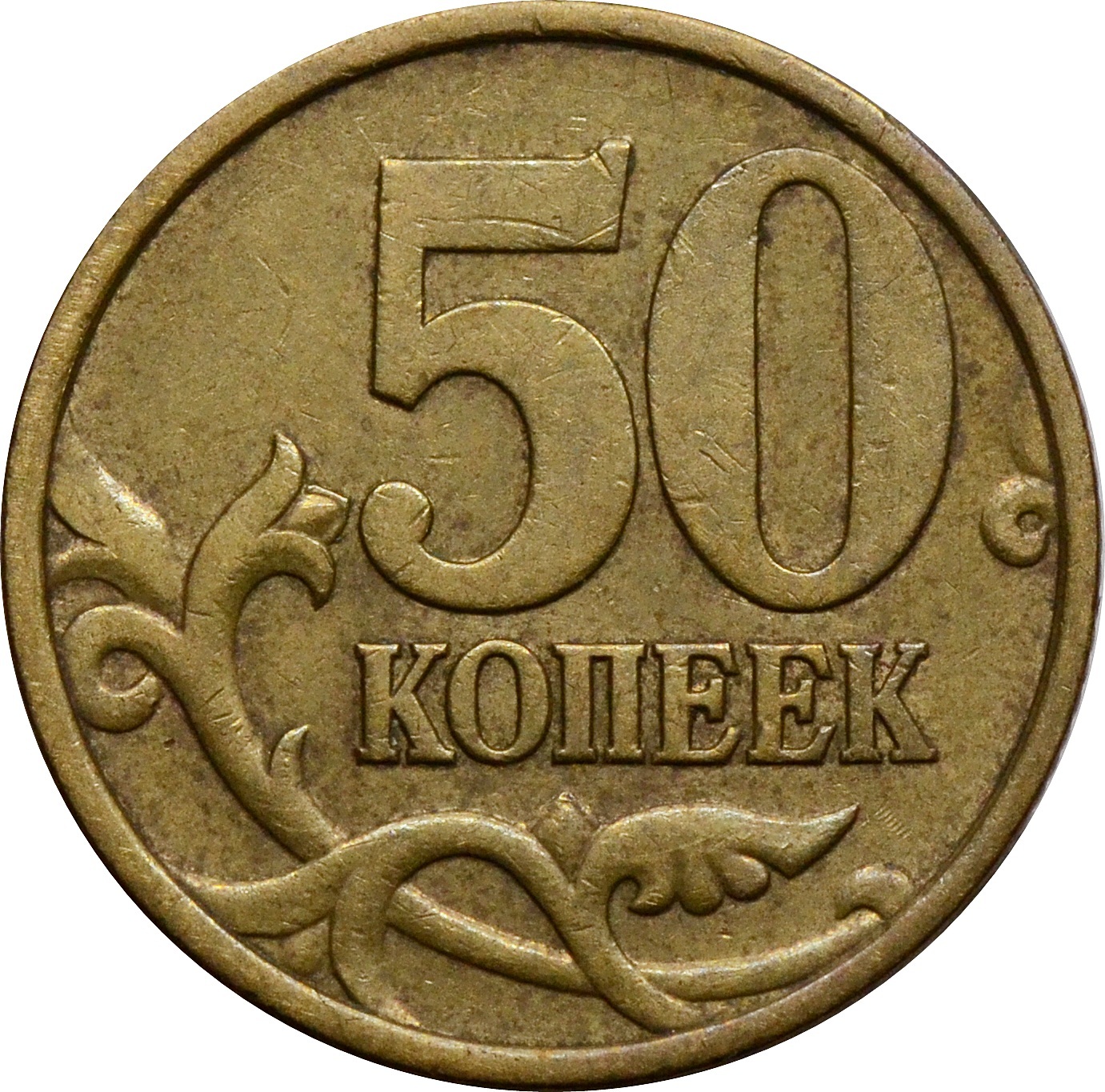 Реверс: по центру обозначение номинала монеты: "50 КОПЕЕК". В нижней части диска стилизованный растительный орнамент в виде двух ветвей