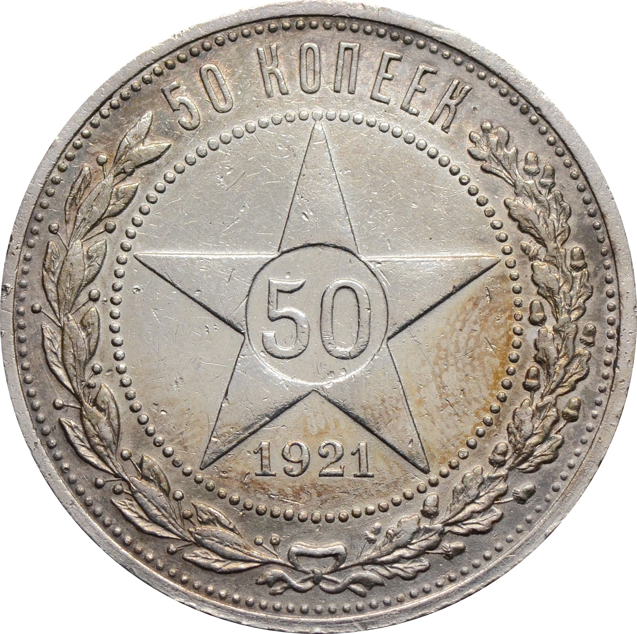 Монета 50 копеек (Полтинник) 1921 СССР АГ в состоянии XF.