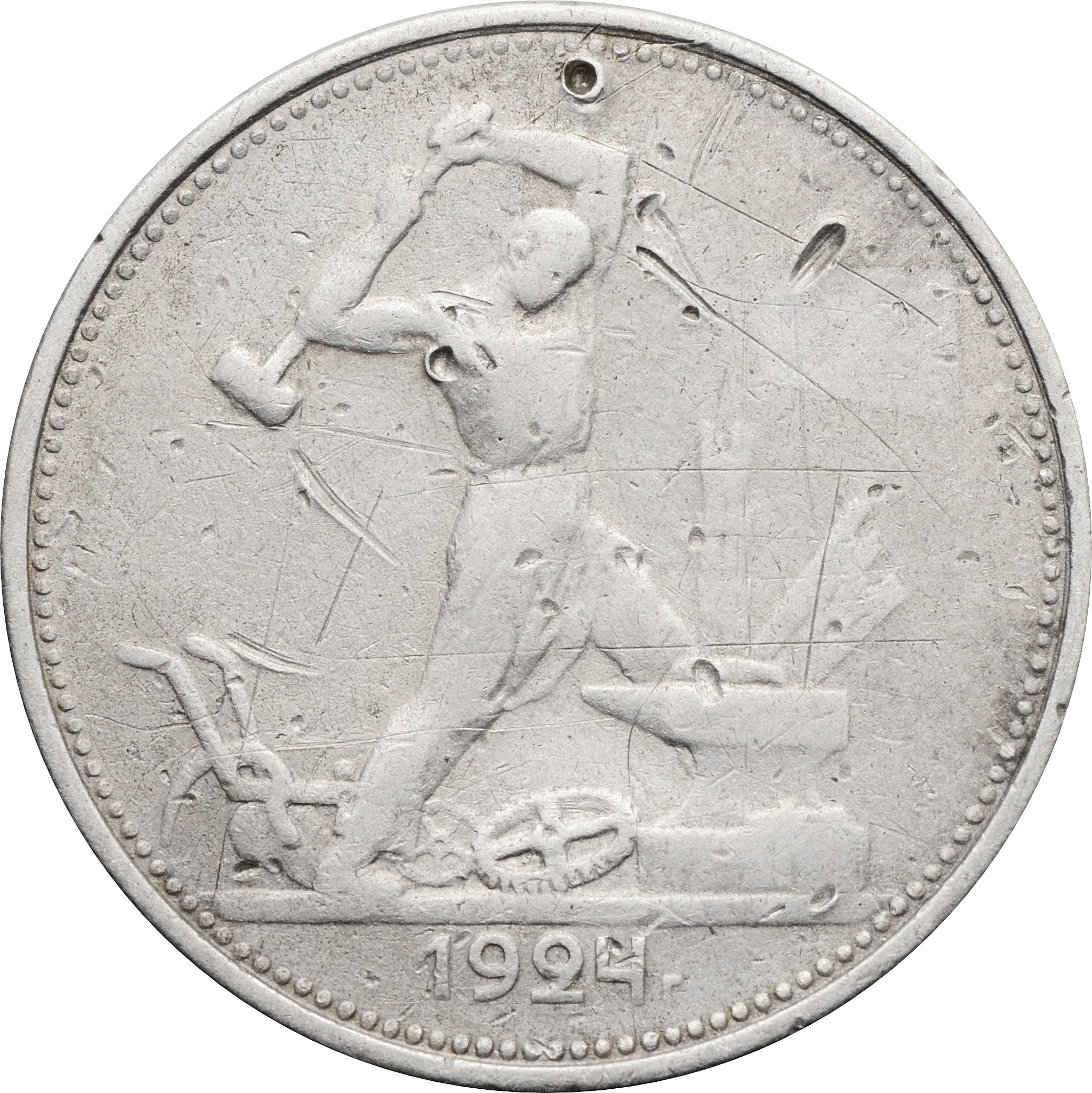 Реверс: по центру монеты размещено изображение молотобойца. Под ним указан год чеканки монеты: "1924".
