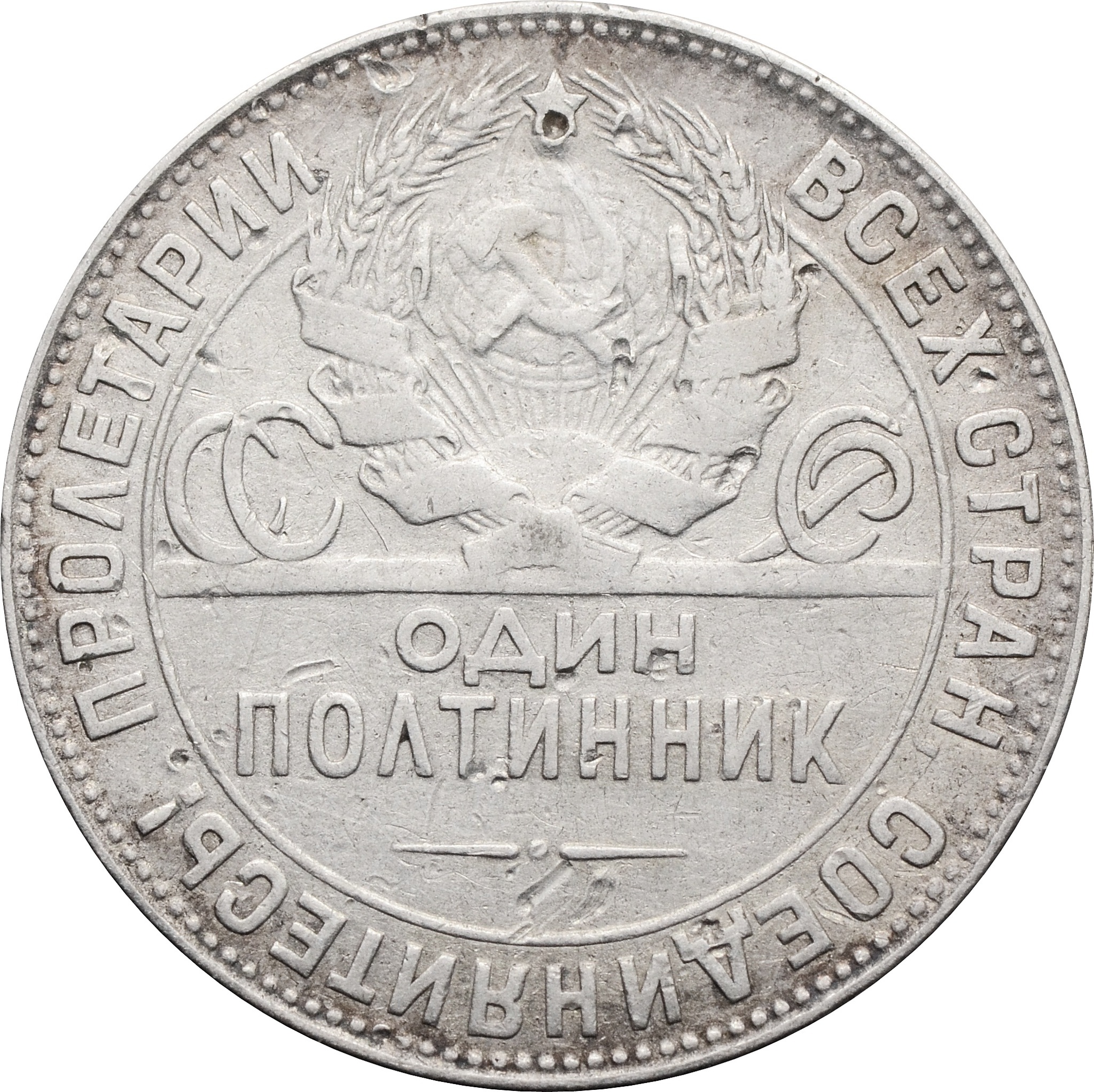 Аверс: чуть выше центра монеты изображен герб СССР с 7-ю витками ленты. Под гербом указан номинал прописью: "ОДИН ПОЛТИННИК". Вдоль канта, по кругу, расположена надпись: "ПРОЛЕТАРИИ ВСЕХ СТРАН, СОЕДИНЯЙТЕСЬ!".