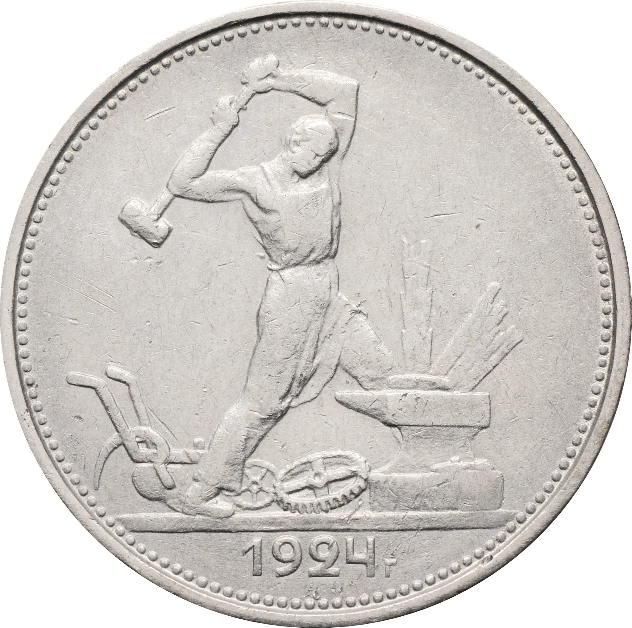 Монета 50 копеек 1924 ТР в состоянии XF (отличное).