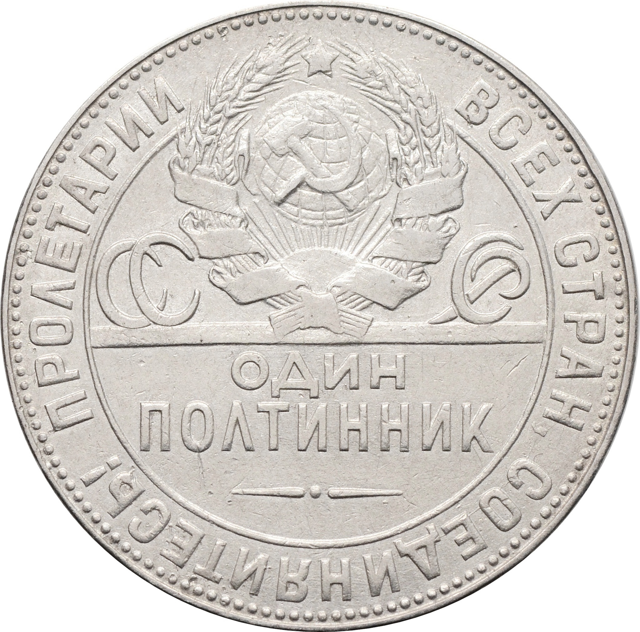 Аверс: чуть выше центра монеты изображен герб СССР с 7-ю витками ленты. Под гербом указан номинал прописью: "ОДИН ПОЛТИННИК". Вдоль канта, по кругу, расположена надпись: "ПРОЛЕТАРИИ ВСЕХ СТРАН, СОЕДИНЯЙТЕСЬ!".