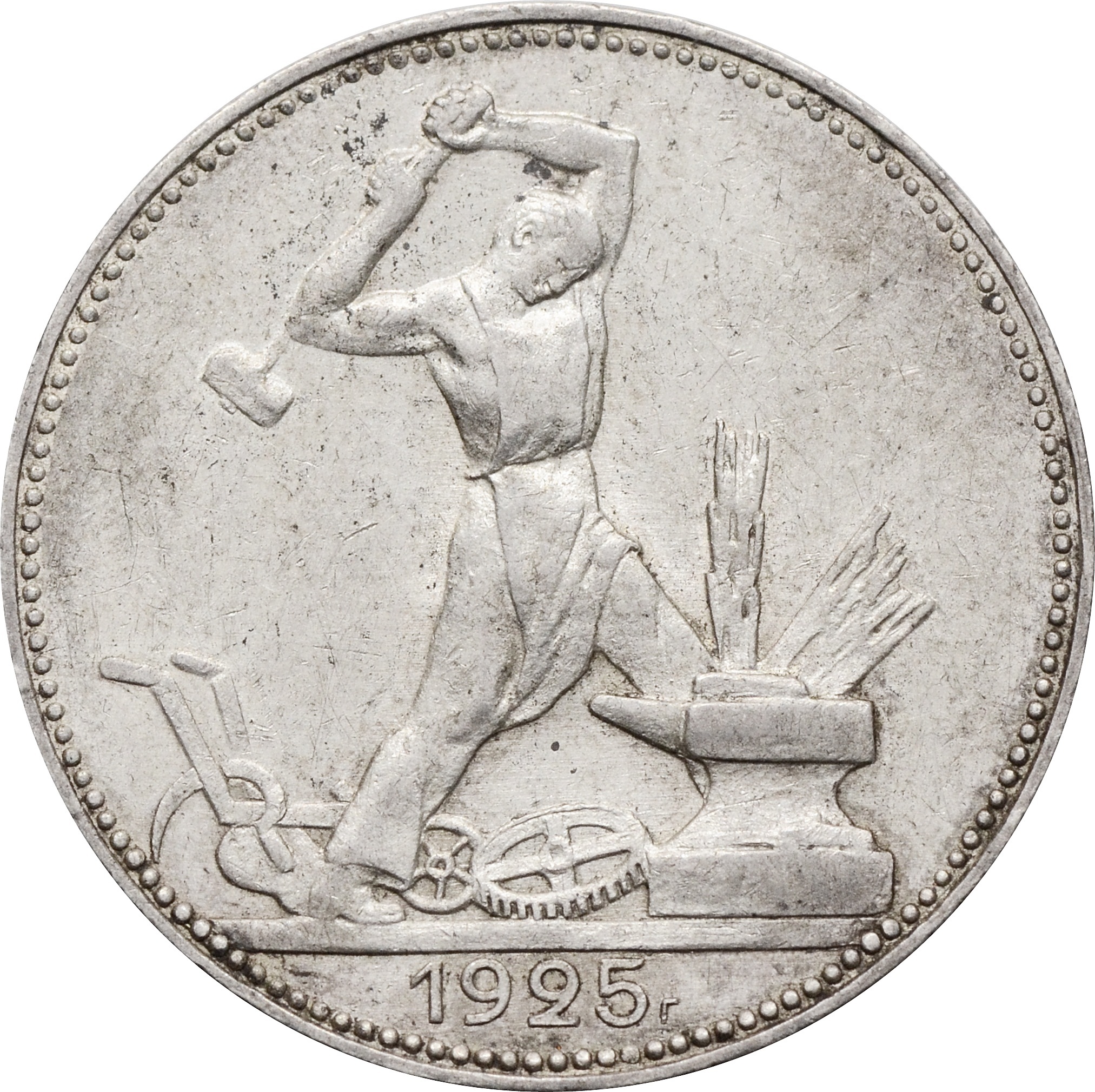 Монета 50 копеек 1925 ПЛ в состоянии AU.