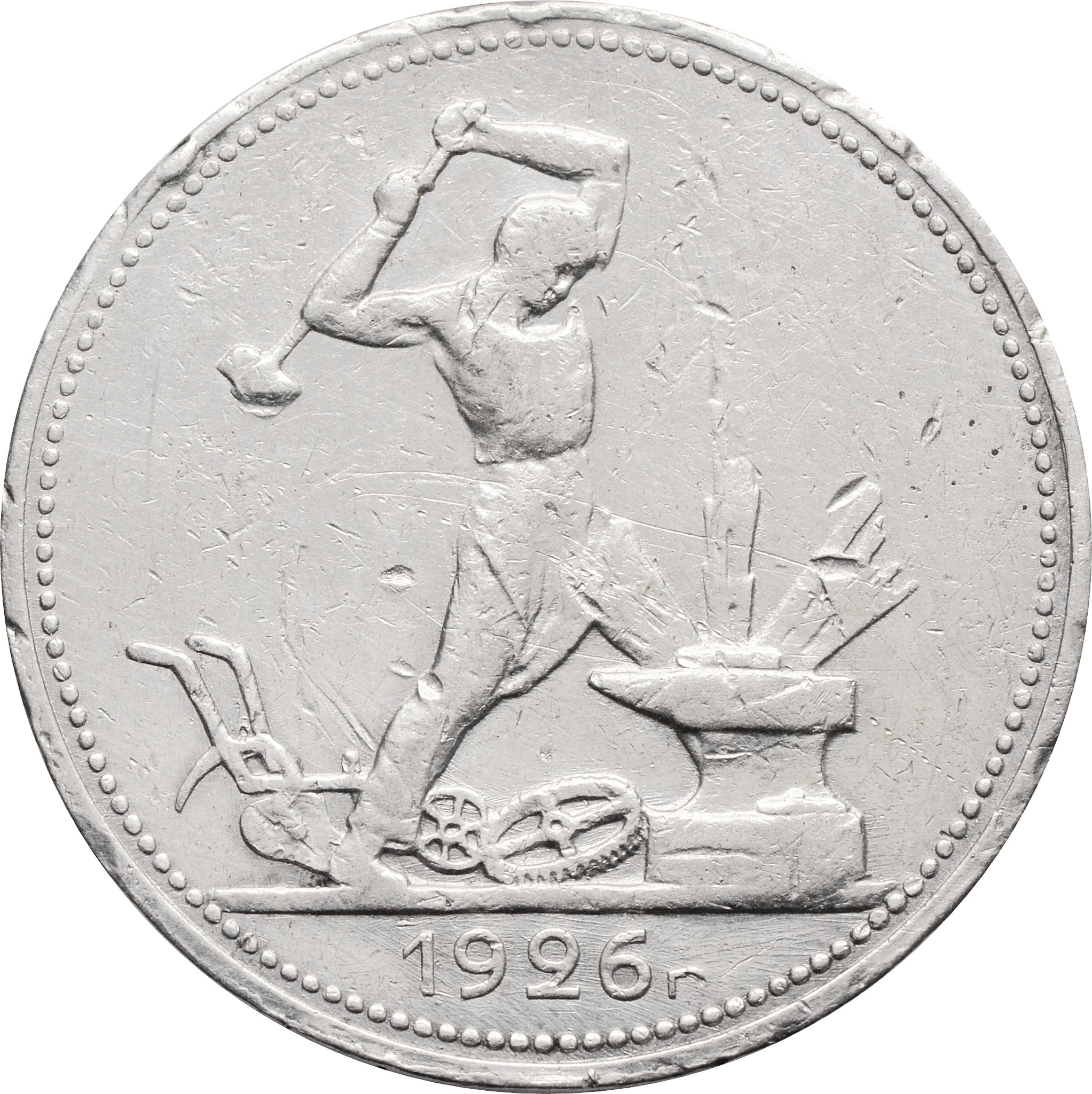 Монета 50 копеек 1926 года ПЛ в состоянии F-VF (хорошее).