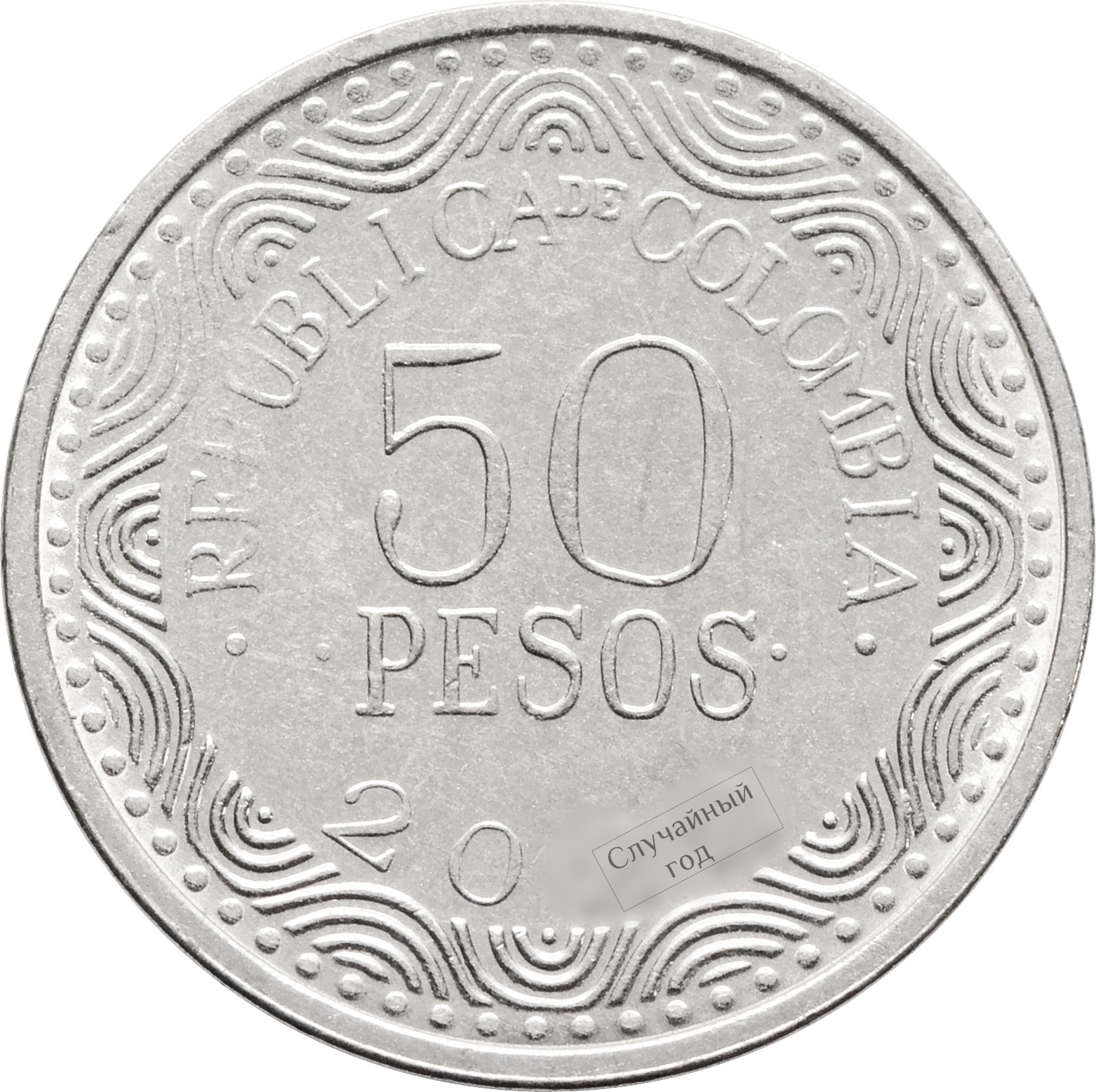 Монета 50 песо 2012-2023 (случайный год) Колумбия в состоянии XF-AU (идеальное).