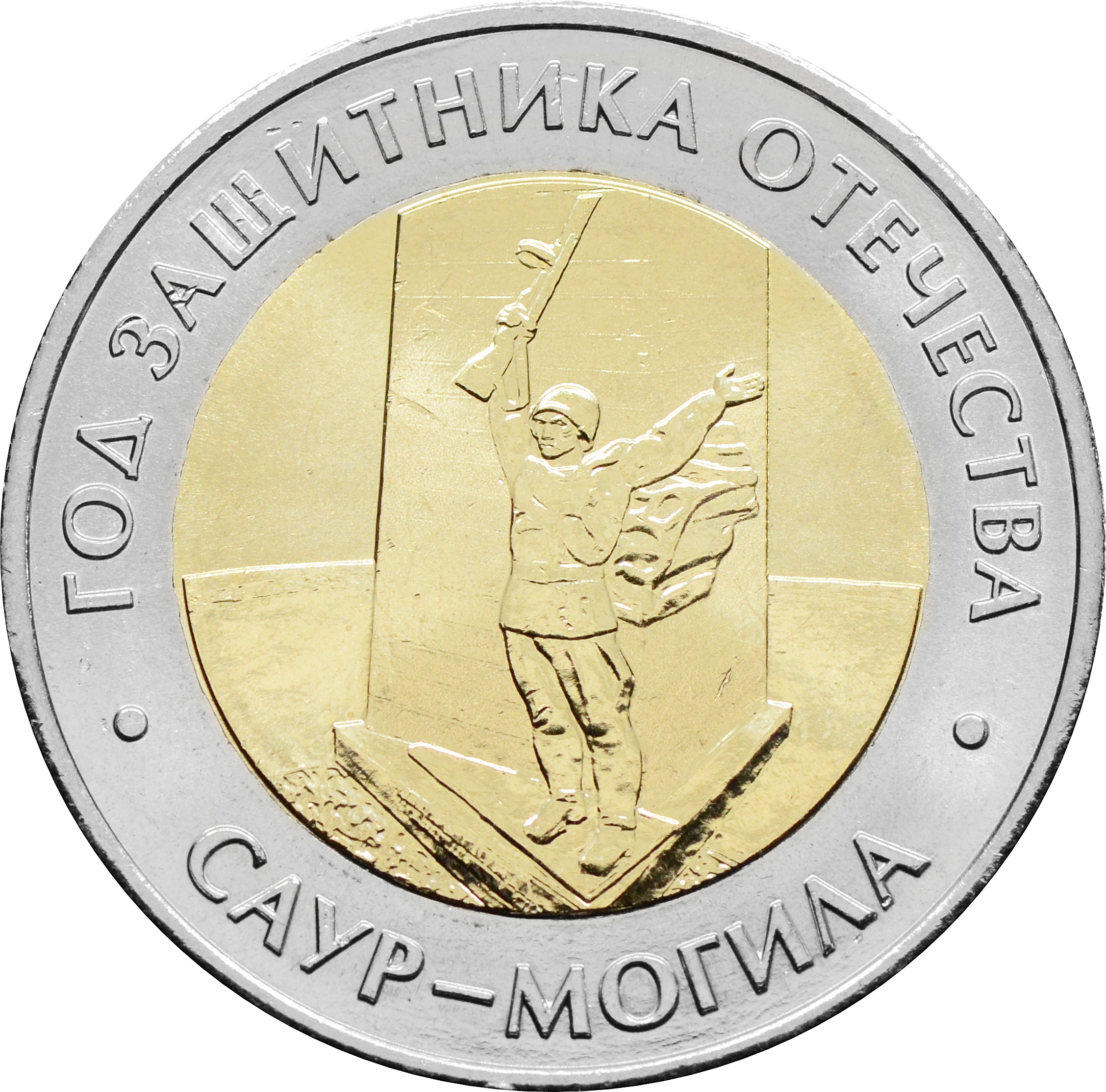 Реверс: по центру расположено рельефное изображен курган «Саур-Могила» в Горловском районе, Донецкой области. В верхней части кольца по окружности расположена надпись: "Год защитника Отечества", в нижней подпись: "Саур-Могила".
