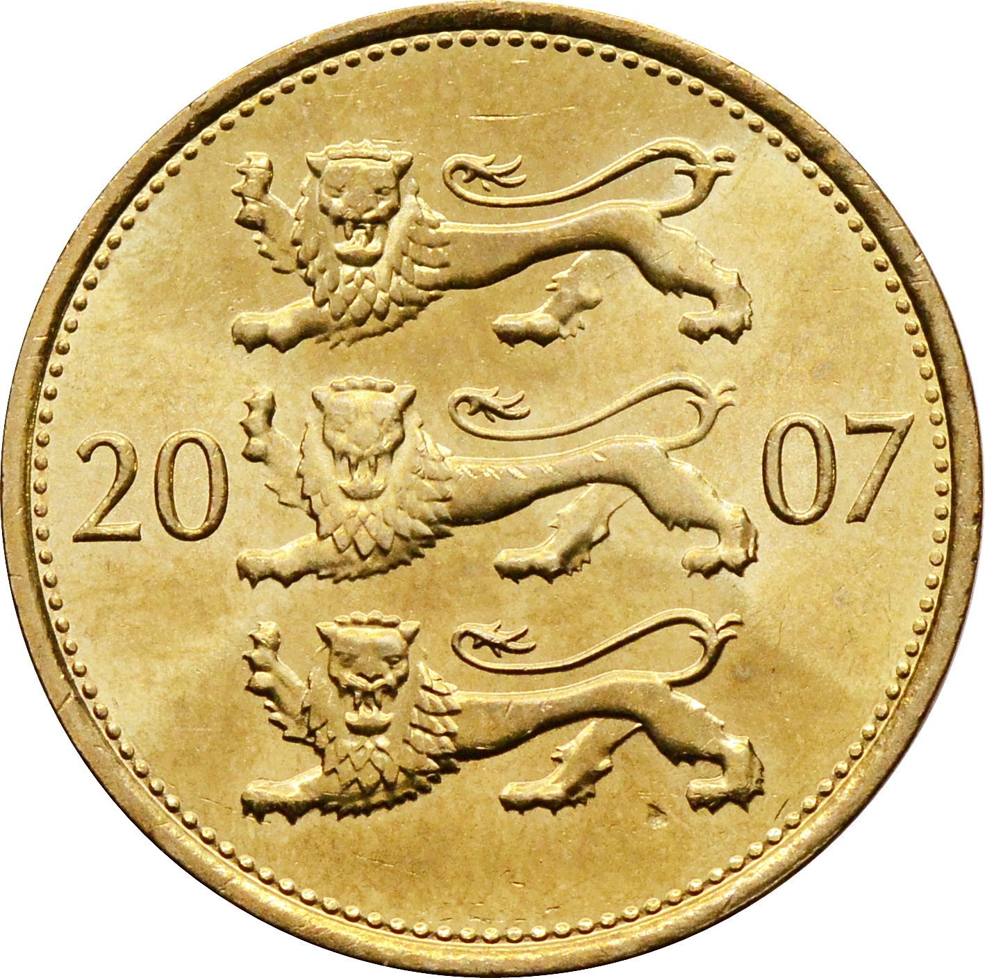 Аверс: по центру расположился герб Эстонии, который разделяет год чеканки монеты на две части: "2007".