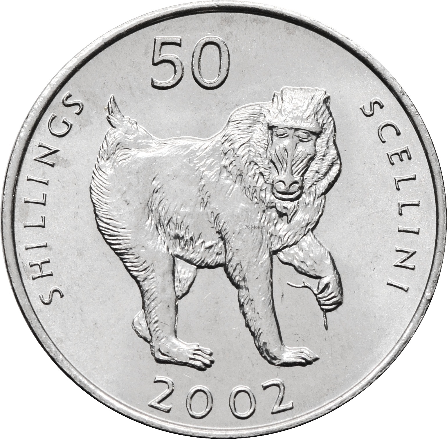 Реверс по центру монеты изображение гориллы. Вдоль канта надпись: "50 SCELLINI /