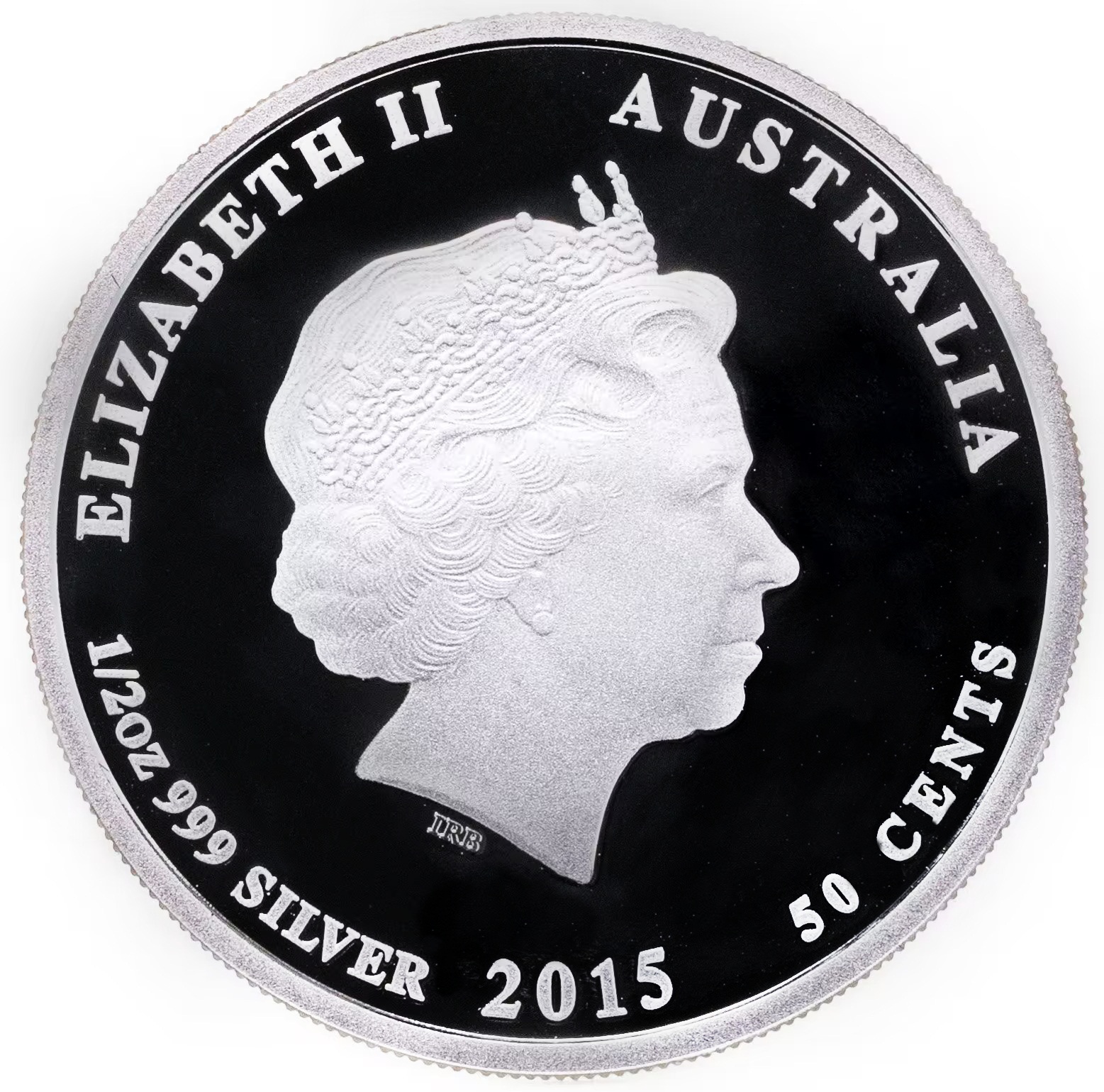 Аверс: в центре изображен портрет королевы Елизаветы 2. Вдоль канта по кругу надписи: "1/2oz 999 SILVER ELIZABETH II AUSTRALIA". Снизу год чеканки: "2015" и номинал: "50 CENTS".