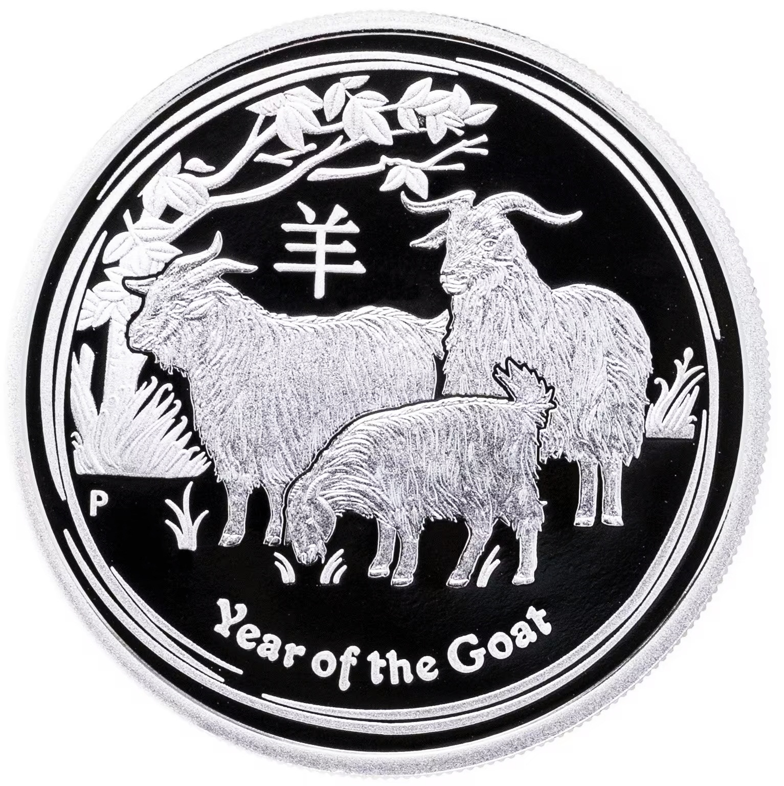 Реверс: по центру размещено изображение коз. Ниже надпись: "Year of the Goat".