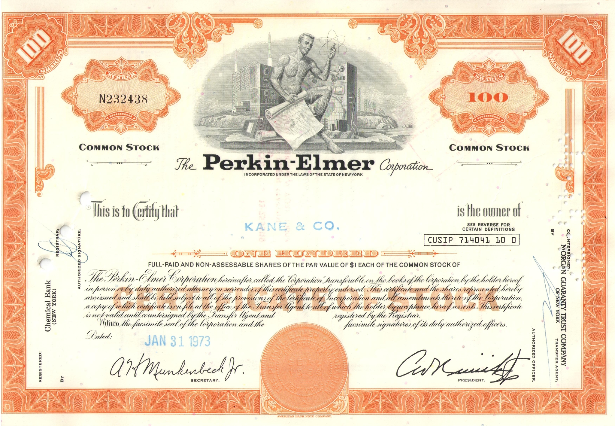 Акция The Perkin-Elmer Corporation* (INCORPORATED UNDER THE LAWS OF THE STATE OF NEW YORK) 1973-1978 г США.
